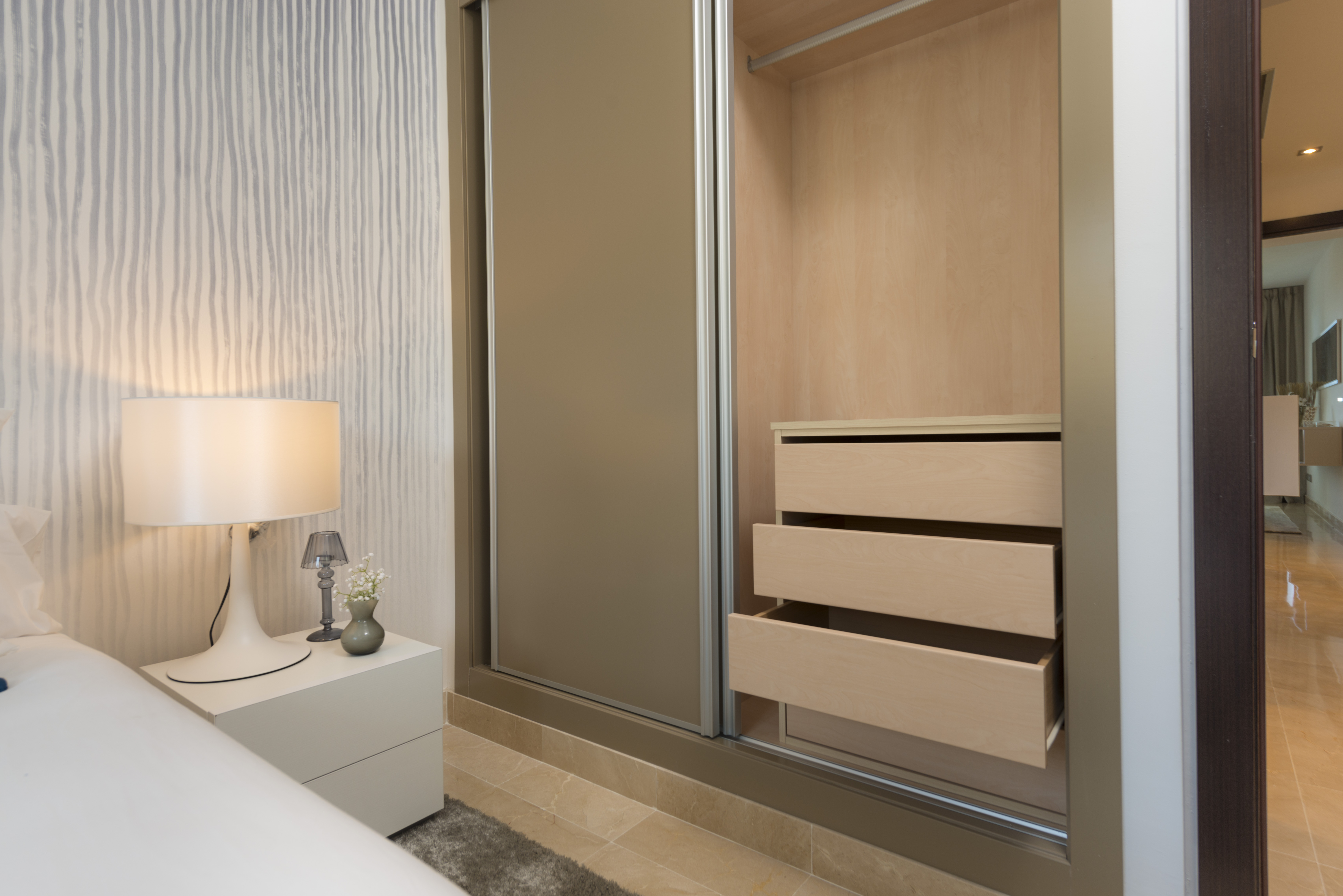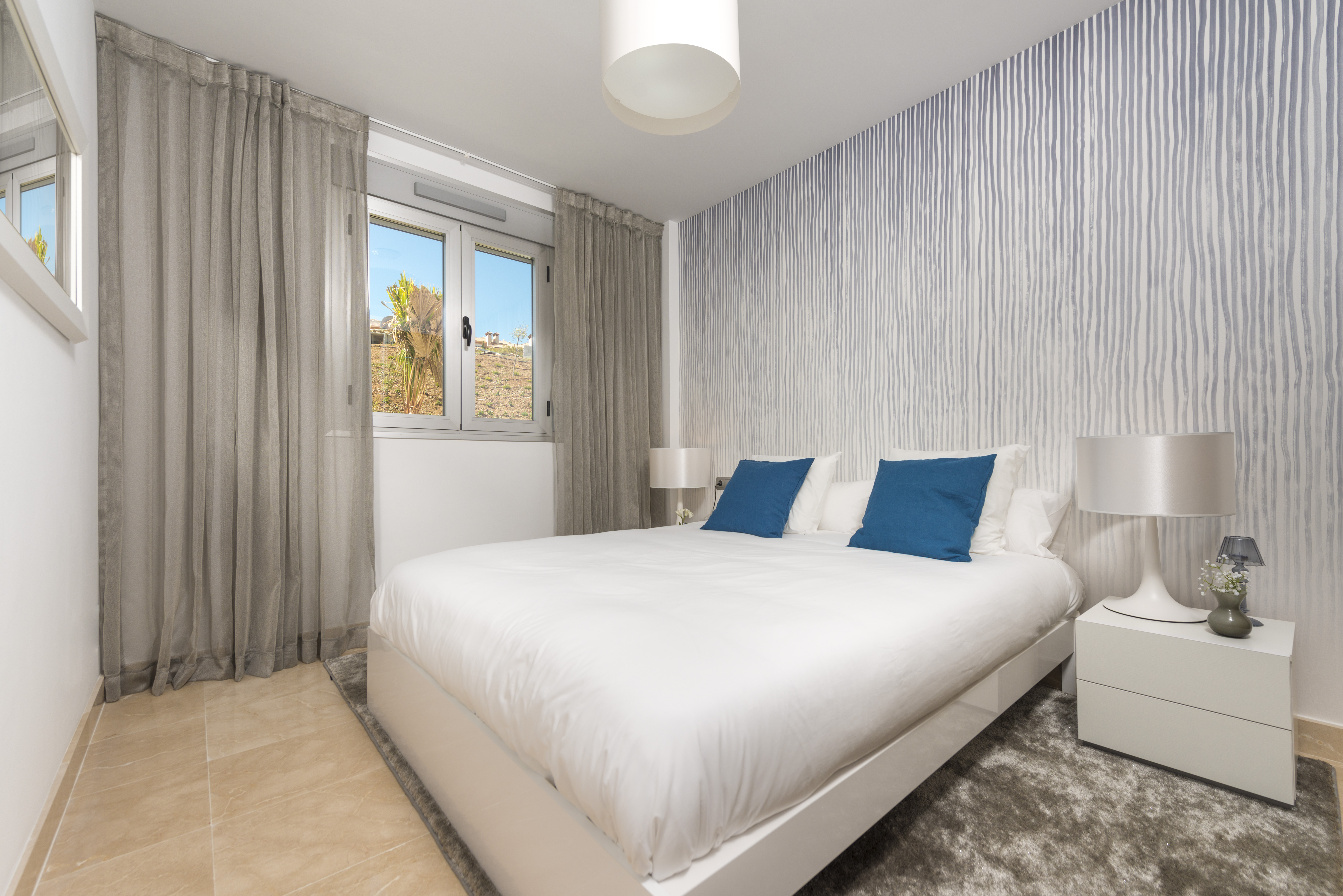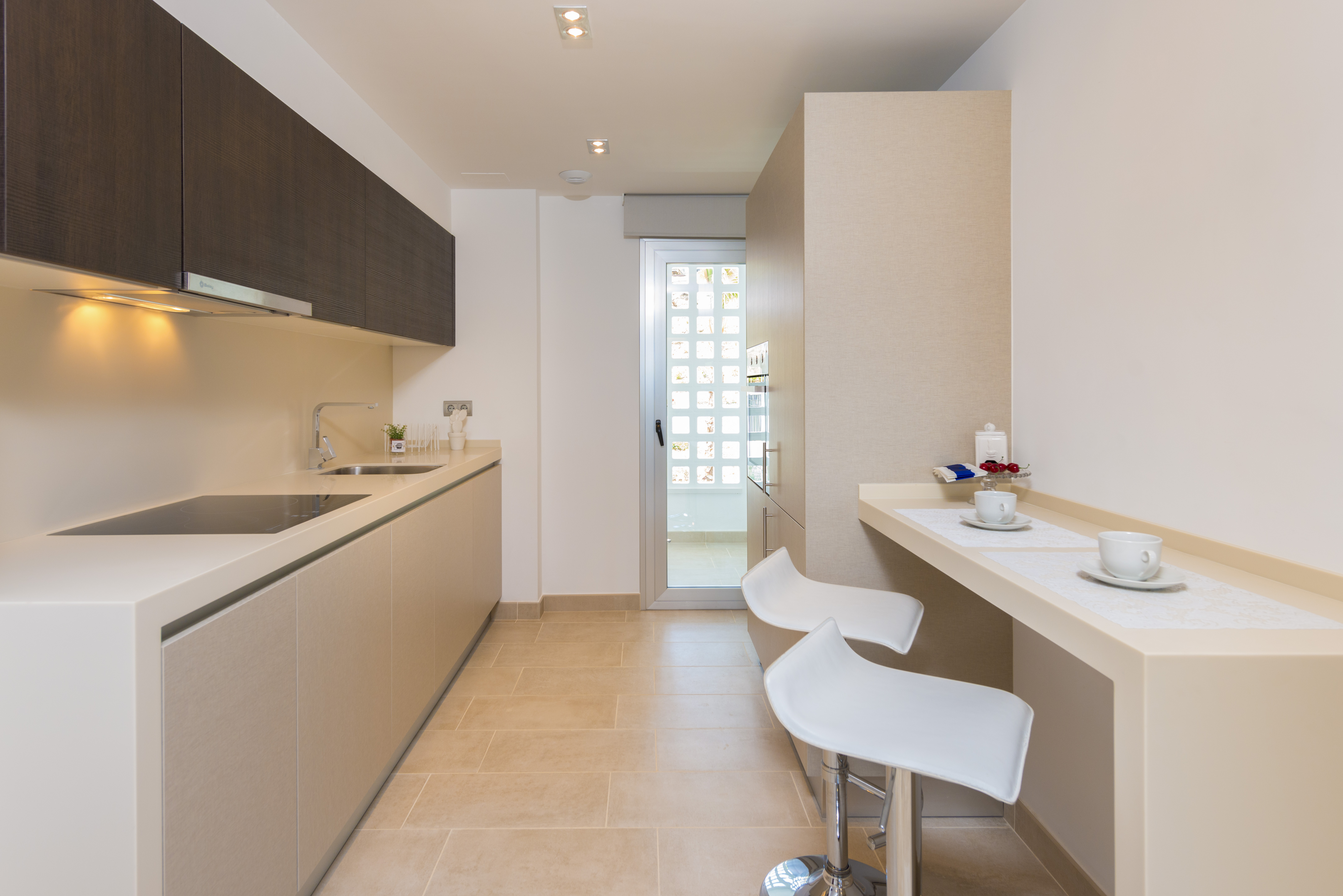 The properties also have 2 large communal swimming pools, landscaped gardens and external private parking. The 2 and 3 bedroom apartments measure from 86.8 square meters. The ground floor apartments have a private garden. All units are built to the highest standard with first-class finishes including an Italian designed integrated kitchen with Silestone worktops, thermal and acoustic insulation and air-conditioning inluded. Each block has its own elevator and exterior carpentry finishes in aluminum. Elevator and external parking space included.