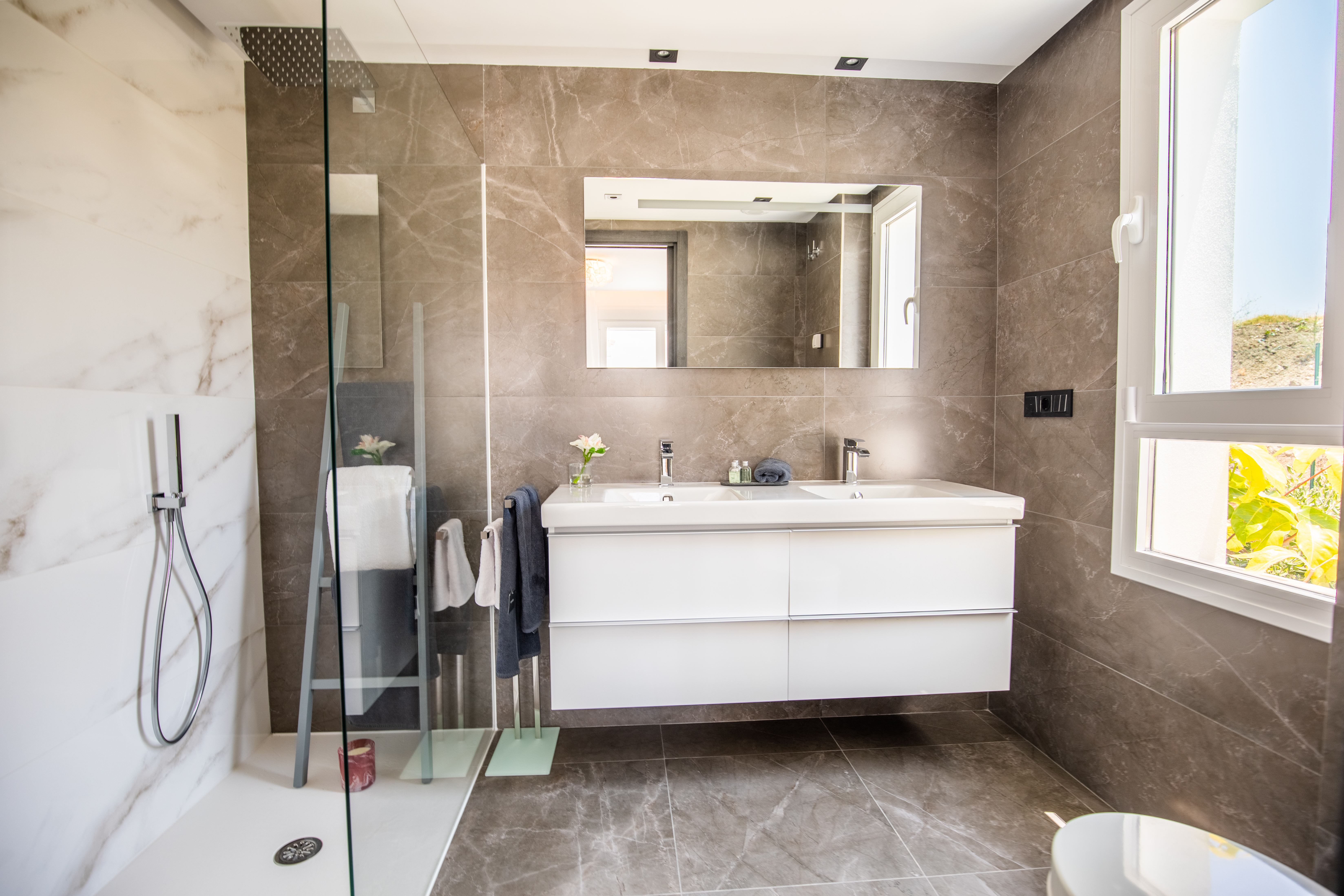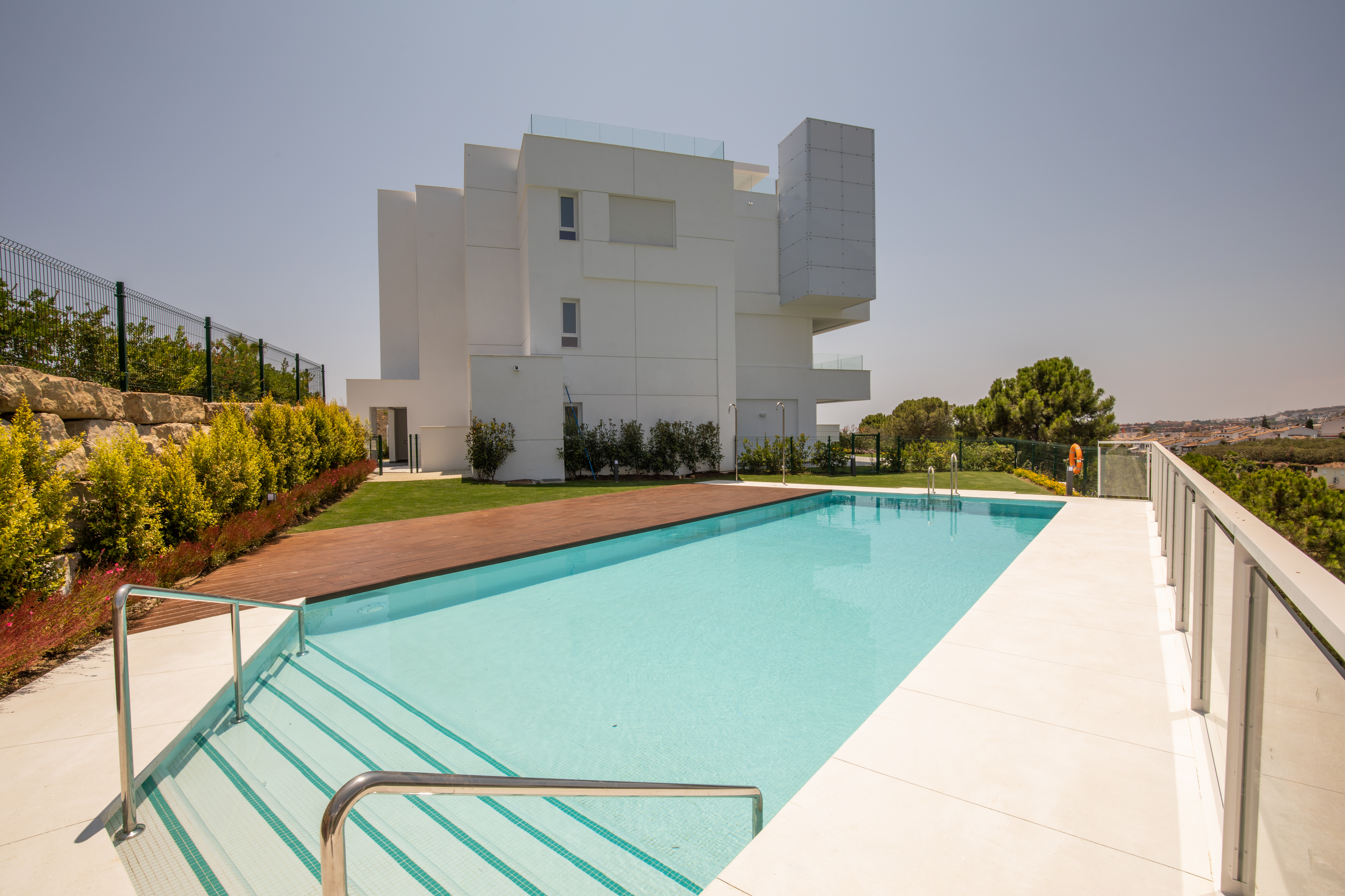 Spacious ground floor homes with gardens and duplex penthouses distributed over 3 elegant buildings with just 3 storeys, situated in a gated community with gardens and communal pool.