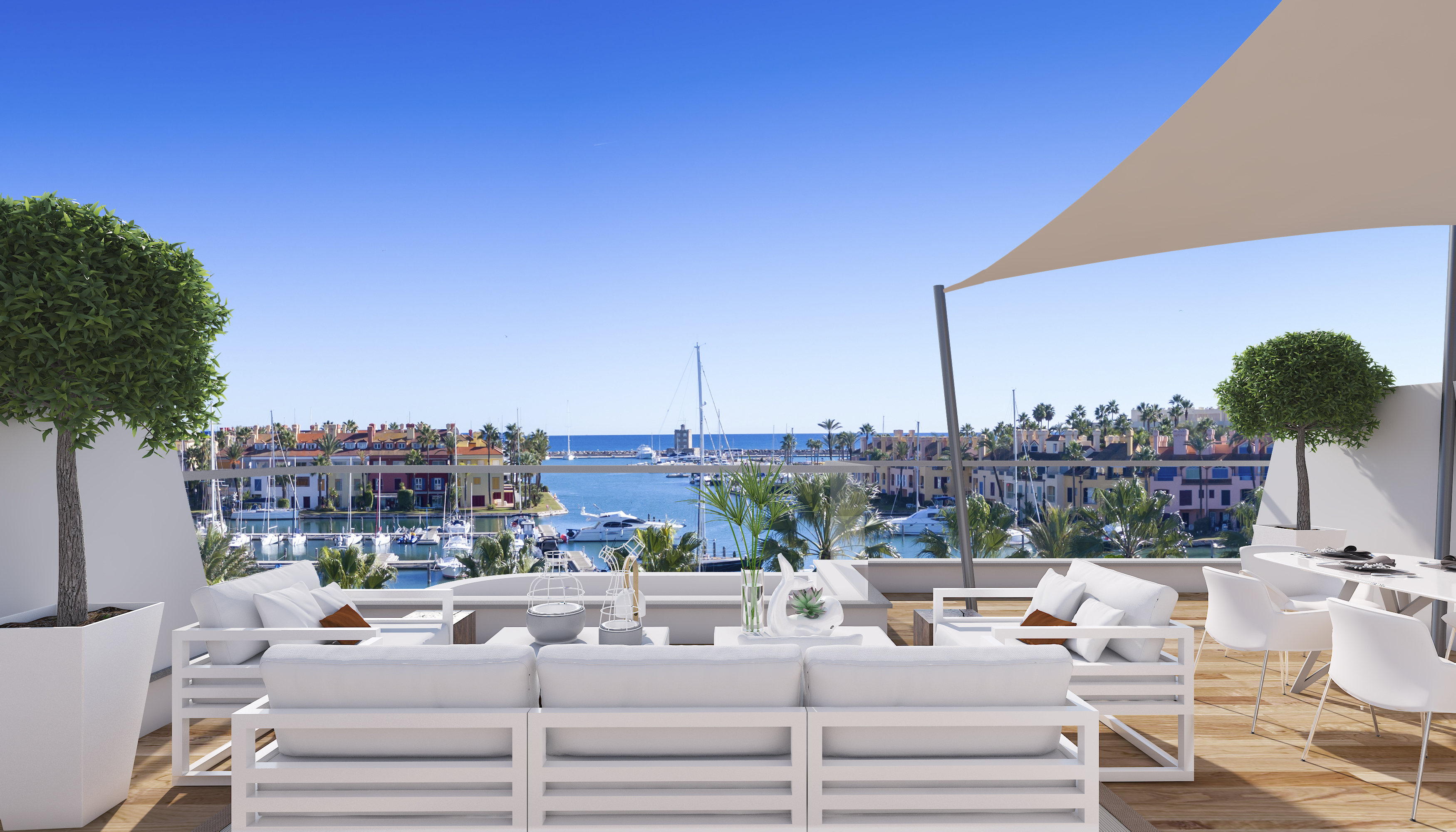 The development comprises two buildings, with 8 and 56 apartments respectively and marvellous views of La Marina de Sotogrande. Situated in a private gated community with pools and garden areas.