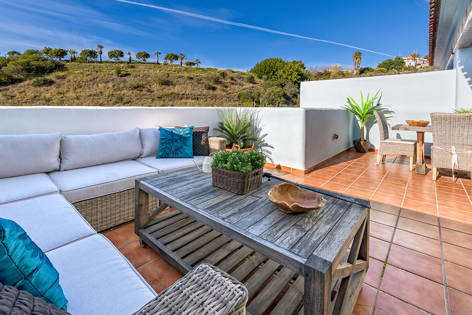 It is a residential of 35 exclusive homes with 2,3 and 4 bedrooms, within a complex conceived as an authentic Andalusian town, with 2 swimming pools, surrounded by local crops and a most peaceful environment yet very close to cosy town of La Herradura.