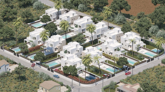 Newly built villas, semi-detached houses and detached houses in the south of Mallorca.