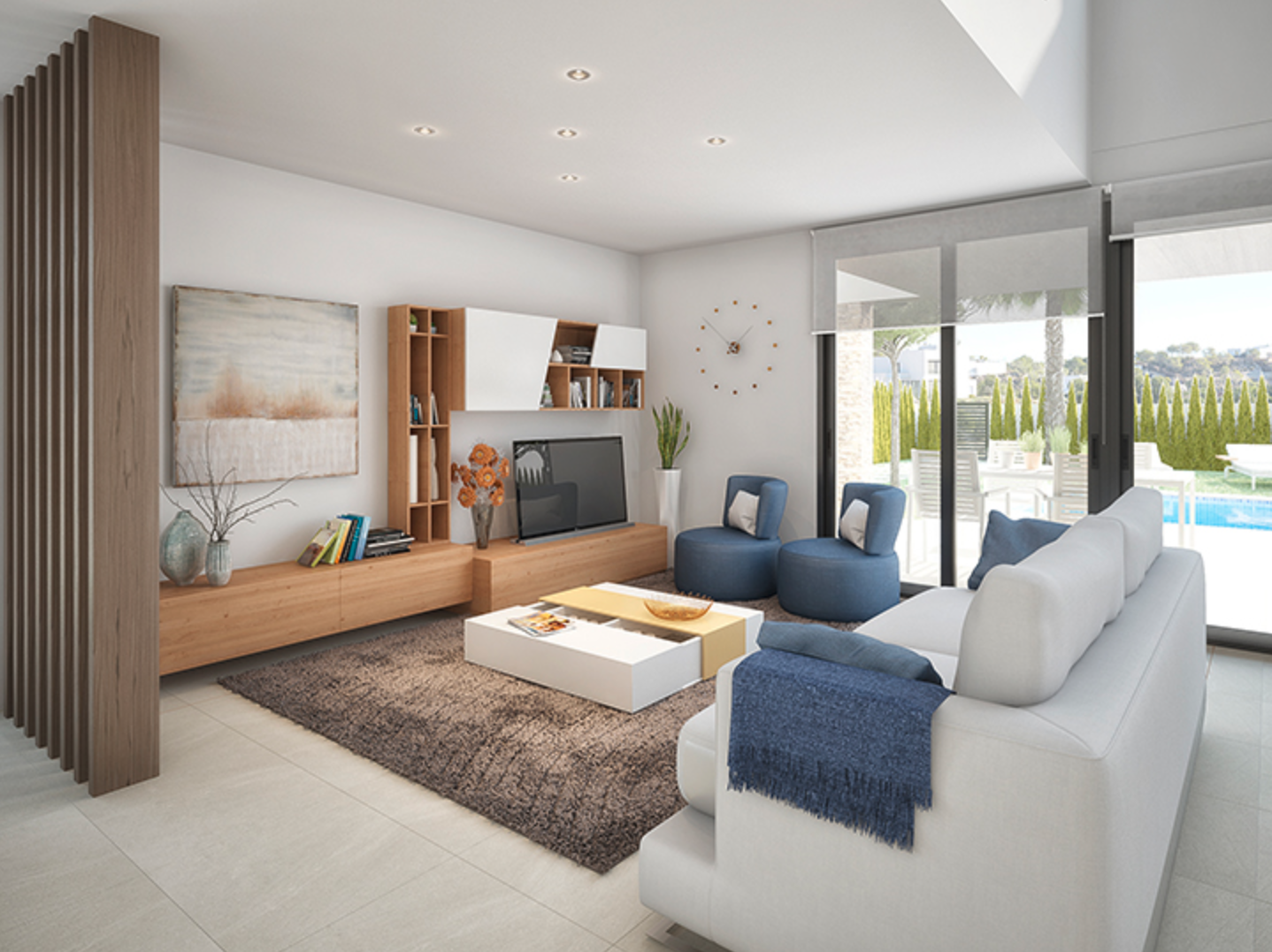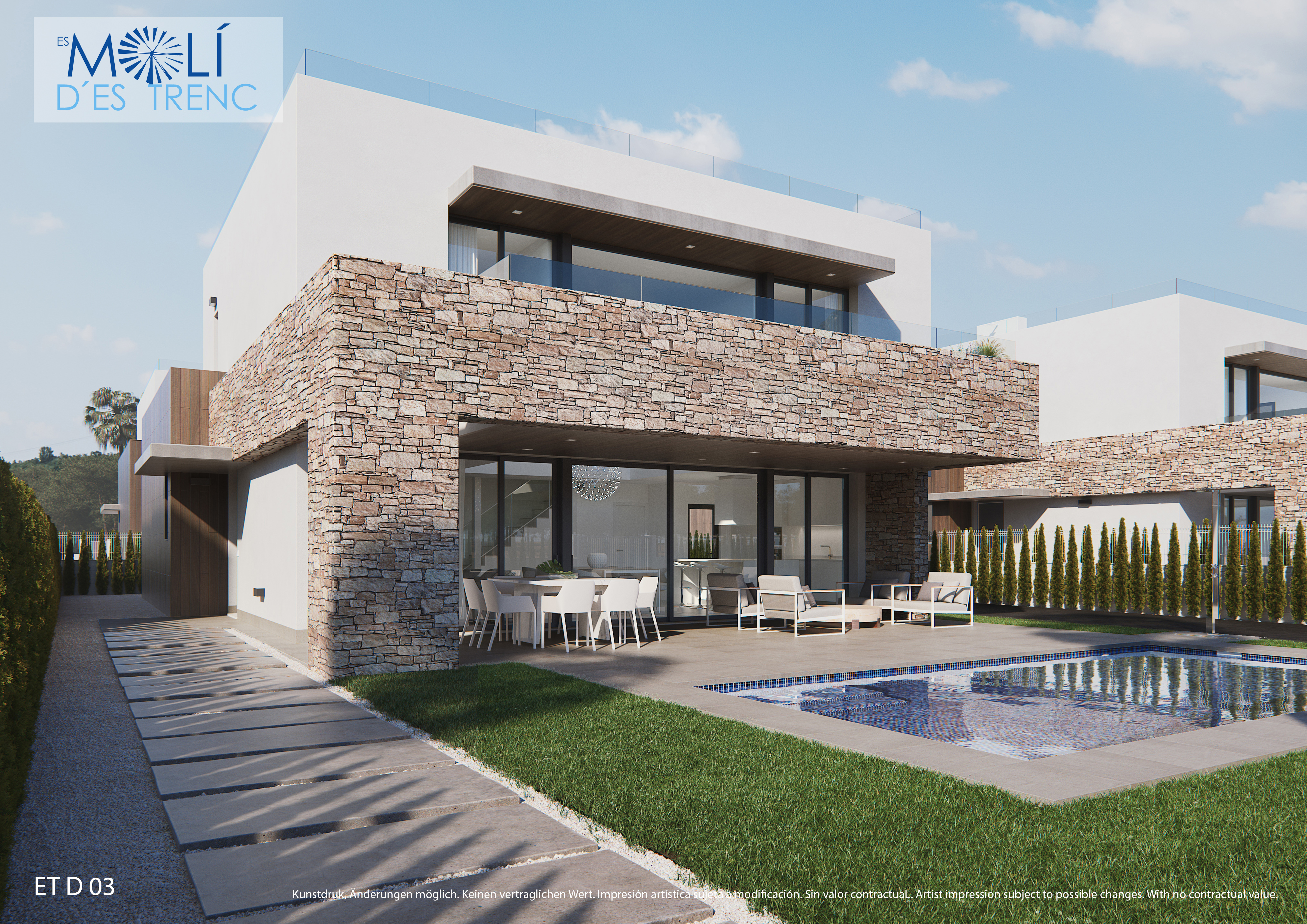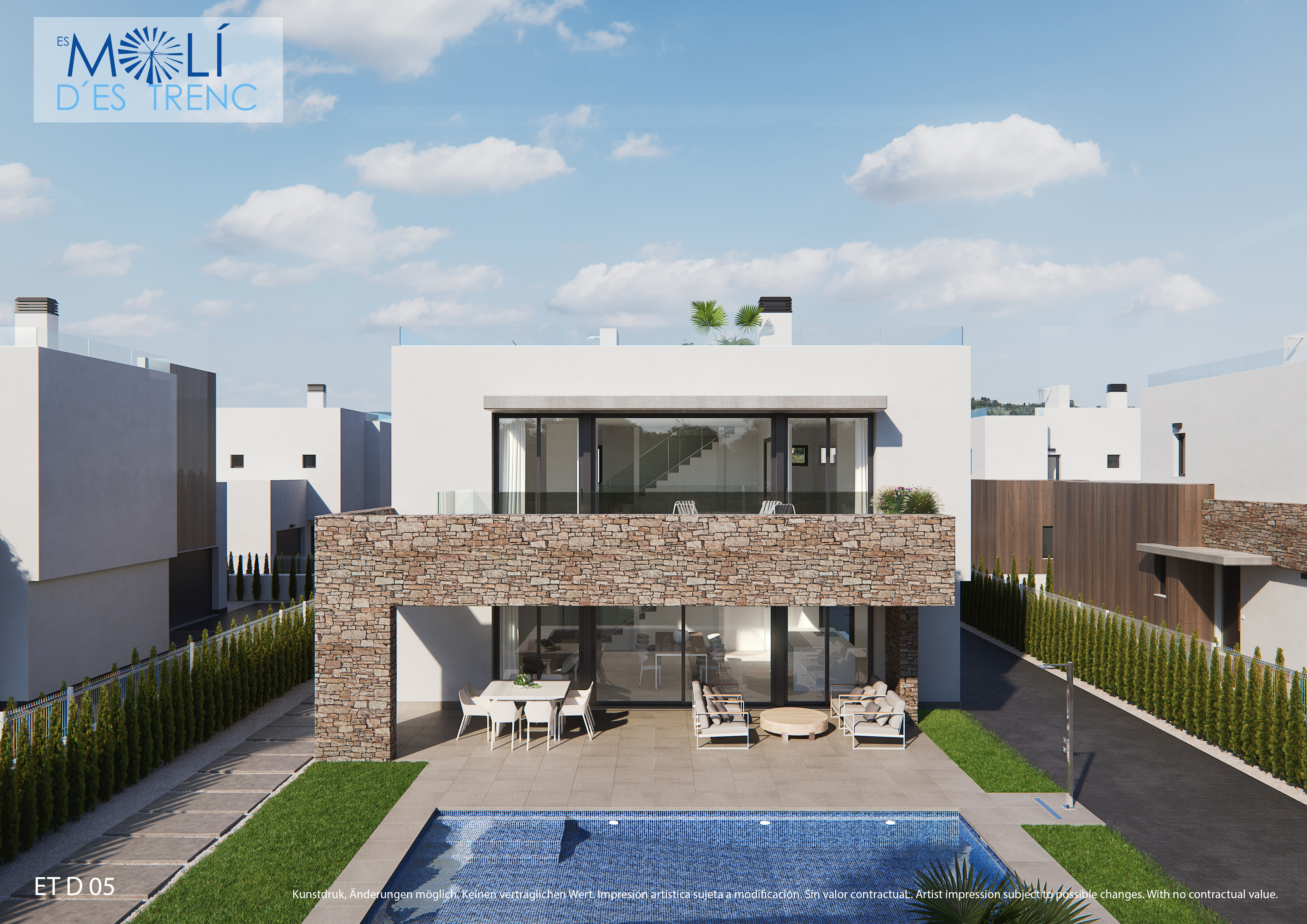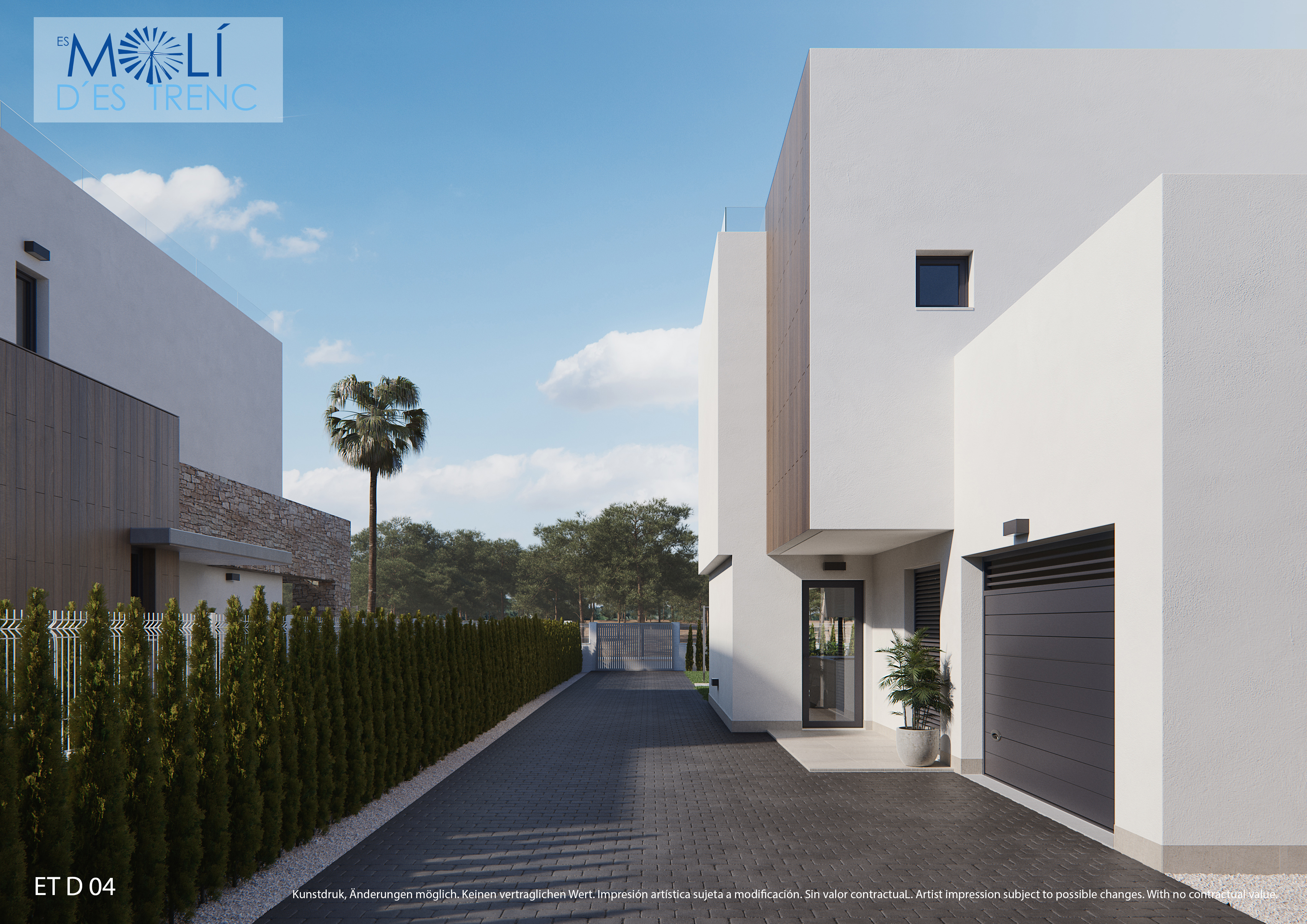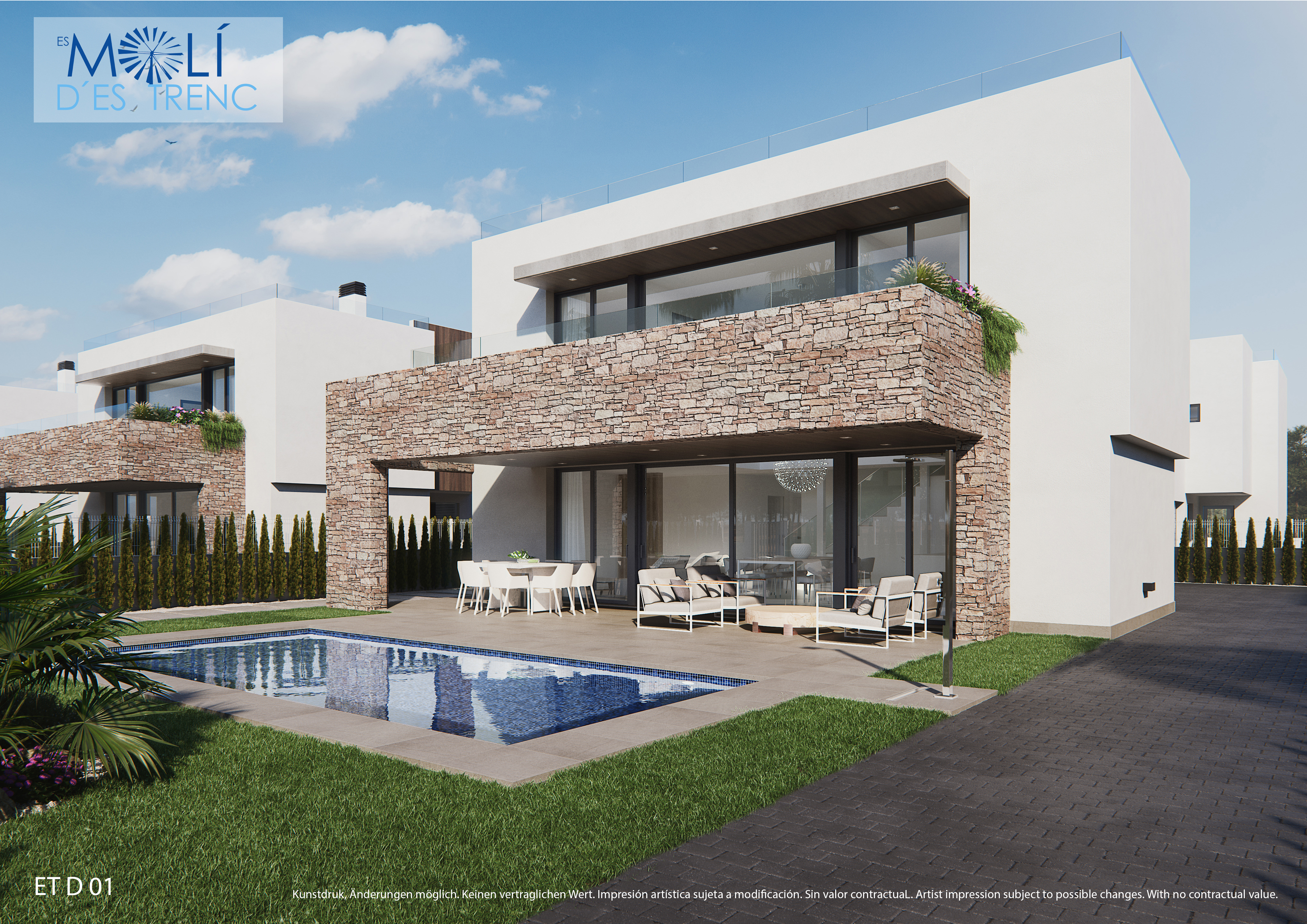 Es Molí d’es Trenc is a residential complex comprising 11 detached villas with 2, 3 or 4 bedrooms located in the town of Sa Rápita in Majorca. All homes have independent accesses, with their own garden area and private pool, as well as a closed parking area and terraces on which to enjoy the beautiful Majorcan weather and year-round sunshine. As a special feature of the project, inside the estate is a traditional water extraction mill (Molí) up for restoration and giving its name to the project.
