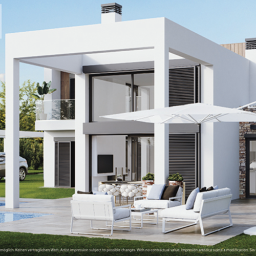 11 Detached villas with private pool and 16 apartments with garden or solarium.