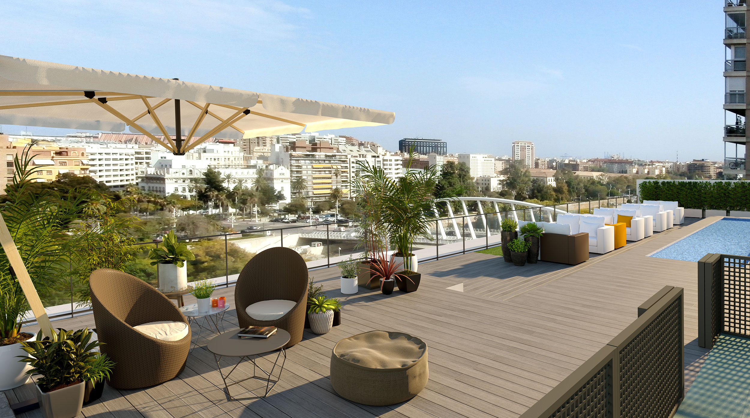 The project has a large multifunctional room for social use, equipped gym, exclusive solarium with resting furniture, children's furniture, sheet of water, where to enjoy pleasant moments of relaxation ... Always with privileged panoramic views of both the river bed and the multitude of roofs and bell towers that crown the historic center of the city.