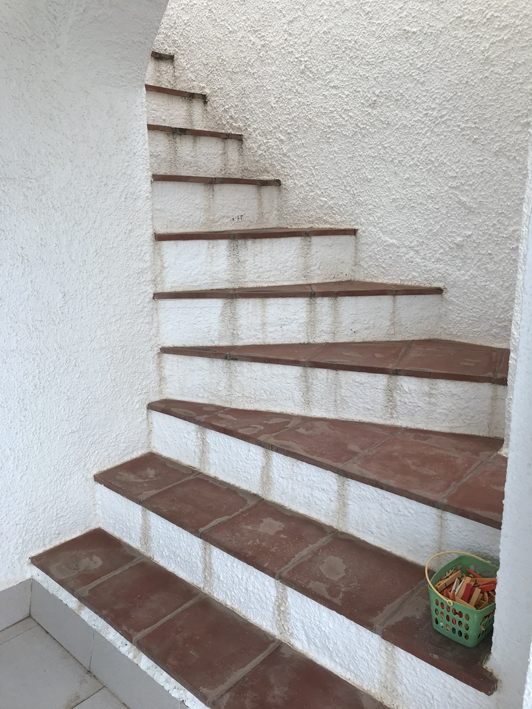 The upper floor has two spacious bedrooms, one of them with porche and terrace overlooking the sea. From the terrace a stairway takes you to a solarium / roof terrace, overlooking the sea, all Hospitalet as well as the mountains. On the upper floor there is also a fully equipped bathroom.