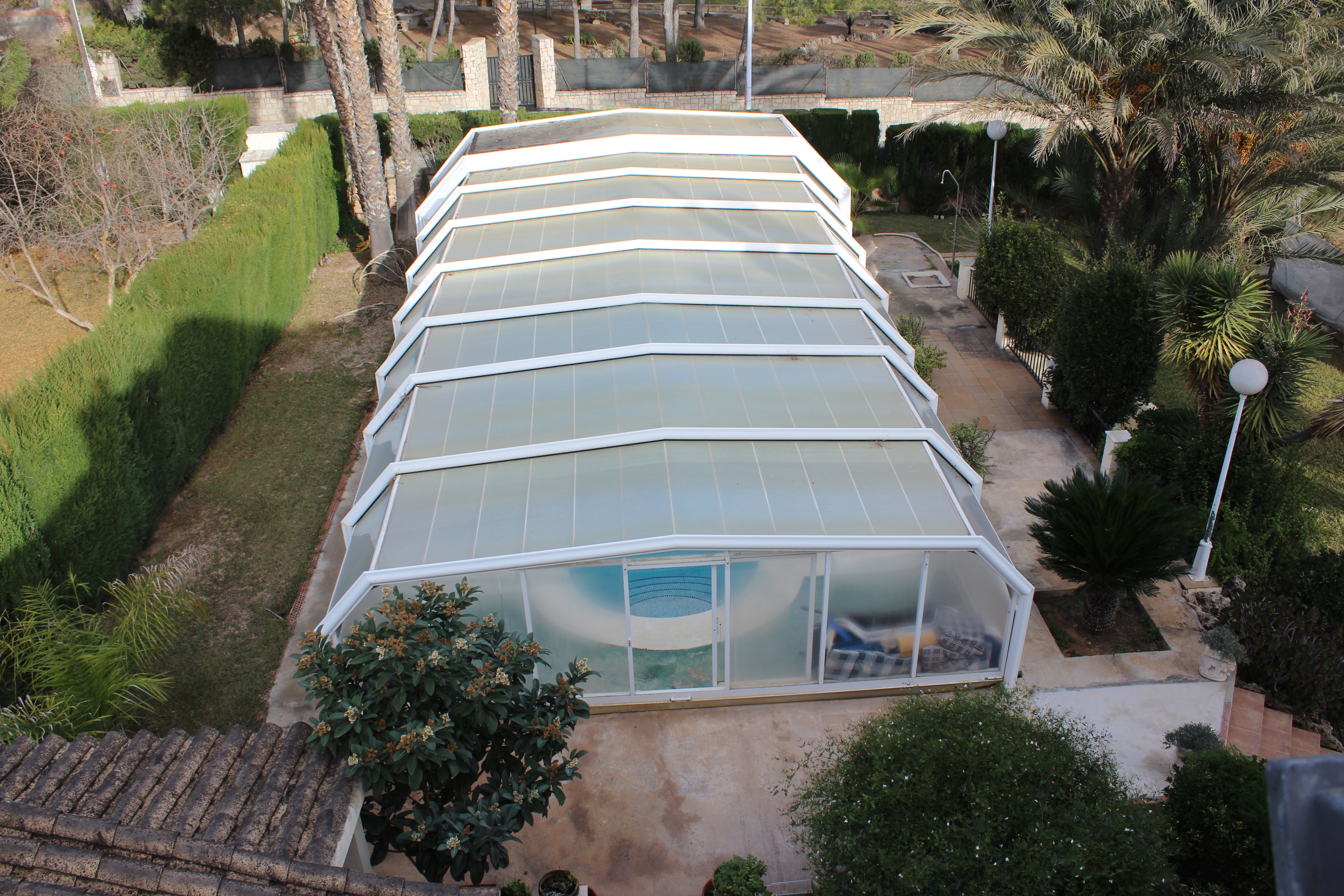 On entering the property we find a large, pleasant living room – dining room of 2 main rooms with a library, located next to a bright kitchen with access to a warm and relaxing terrace, 1 bathroom and a bedroom. We can access the impressive heated swimming pool which is enclosed with a glass roof, via any of the terraces. Being heated, you can enjoy it both in the summer and winter and you will not have to worry about the safety of the little ones thanks to its cover. In addition there is a beautiful garden and a barbecue area, the ideal place for relaxation in the company of friends on summer evenings.