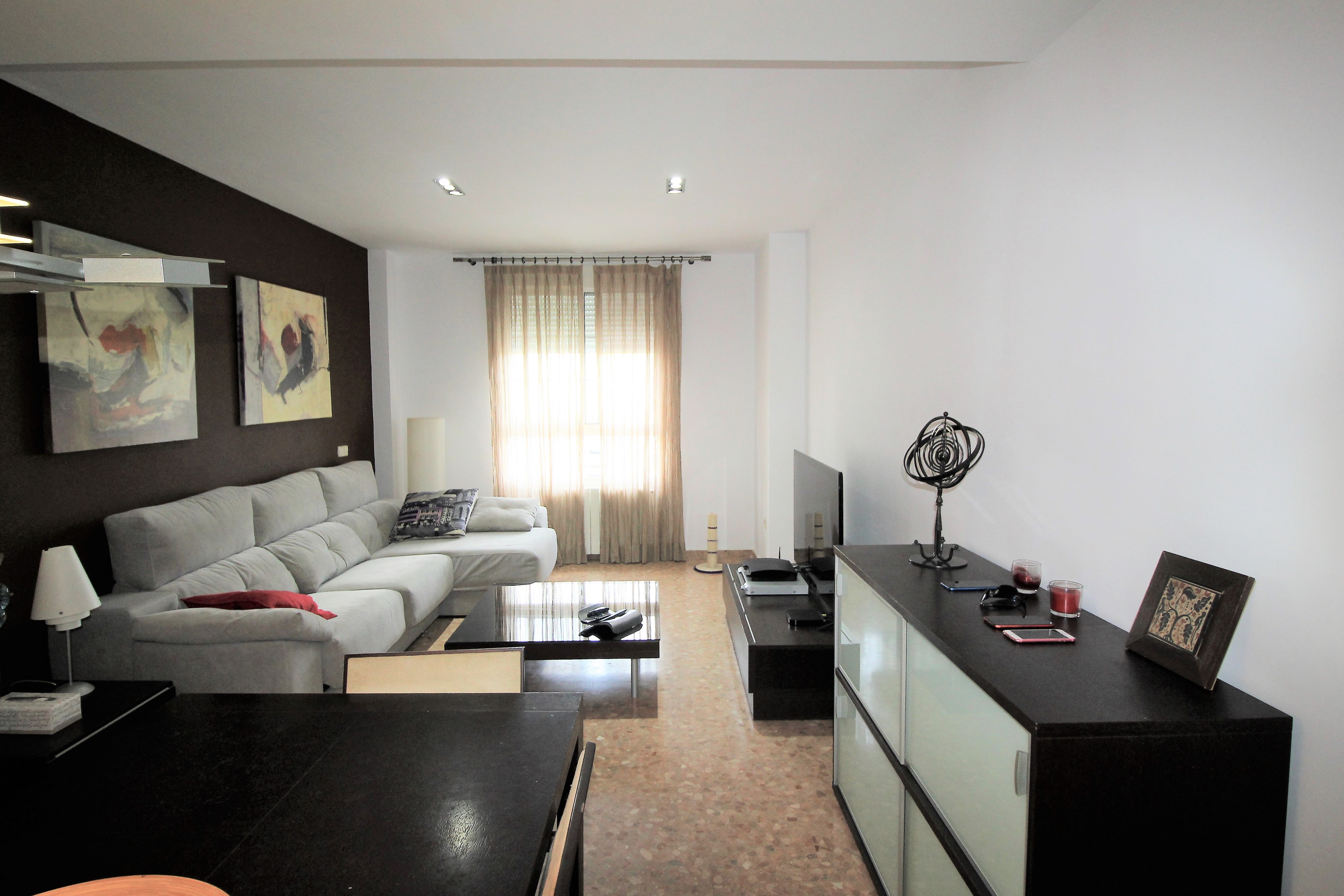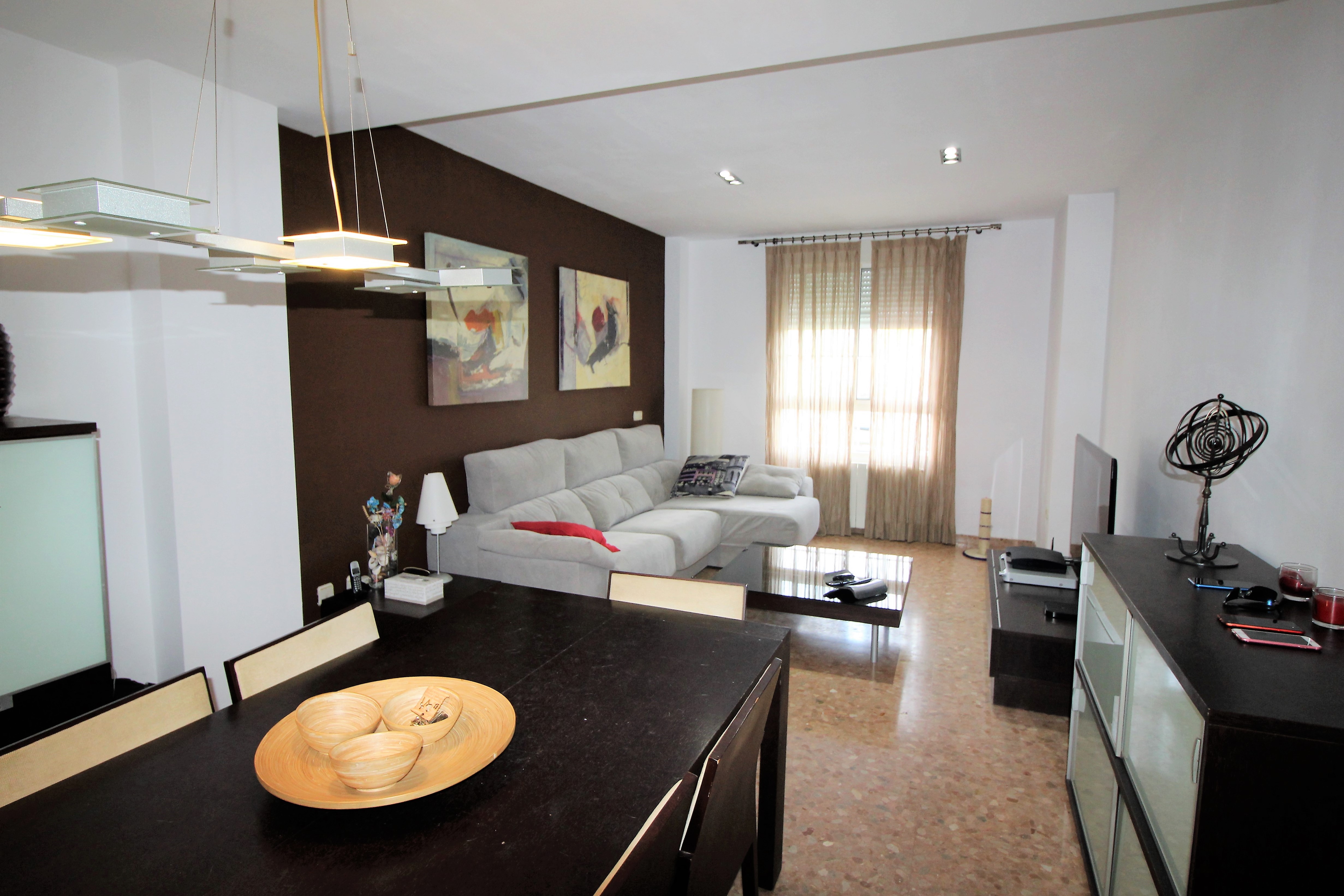 It has a nice living room with lots of natural light, three bedrooms with access to the terrace, fitted wardrobes, two bathrooms, a kitchen with access to the laundry.
