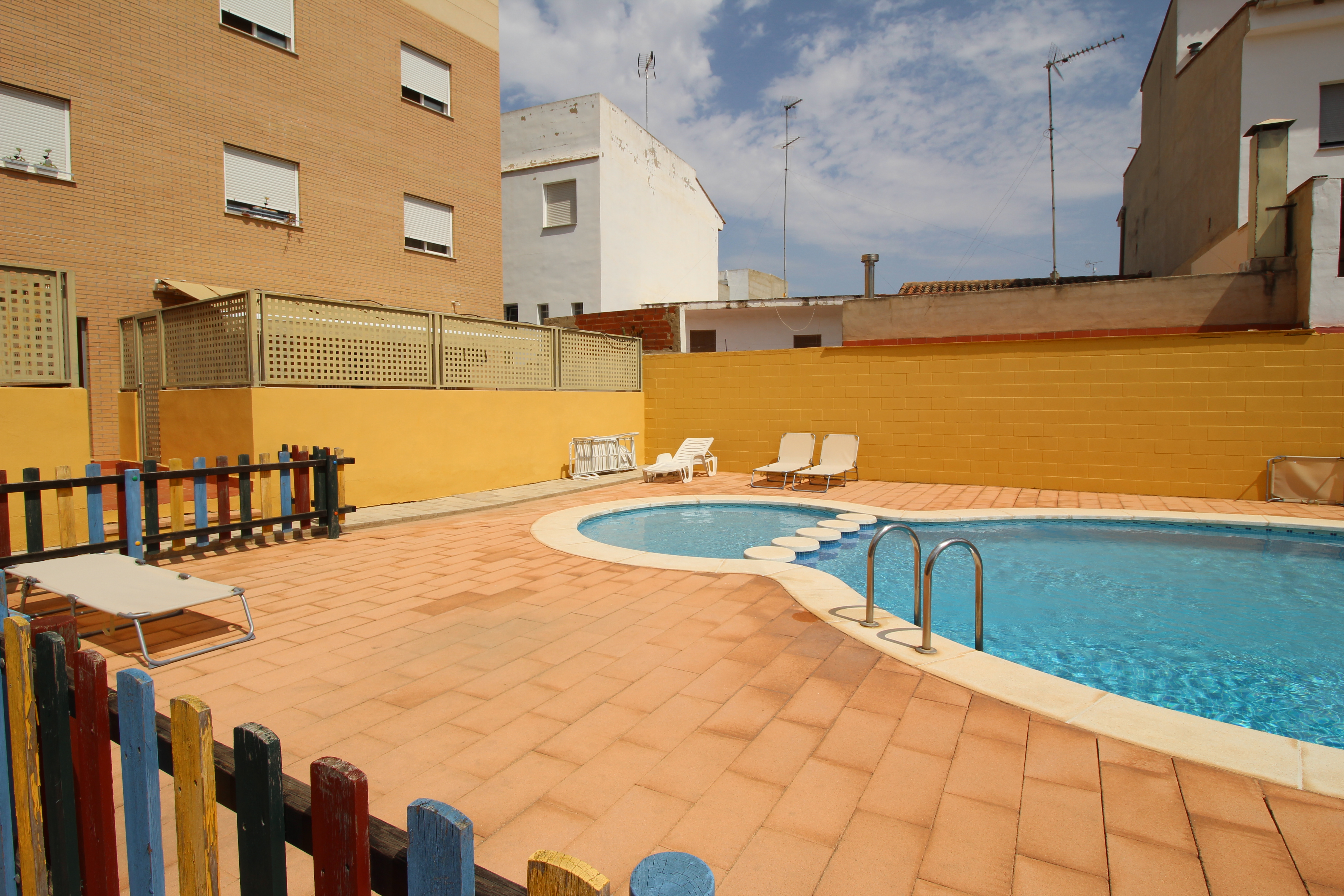 Magnificent apartment in Villamarxant, in a complex with playground for children and pool. It is a first floor with direct access to the community area. It has an area of 90 m2 and two terraces of 17 m2 and 12 m2.