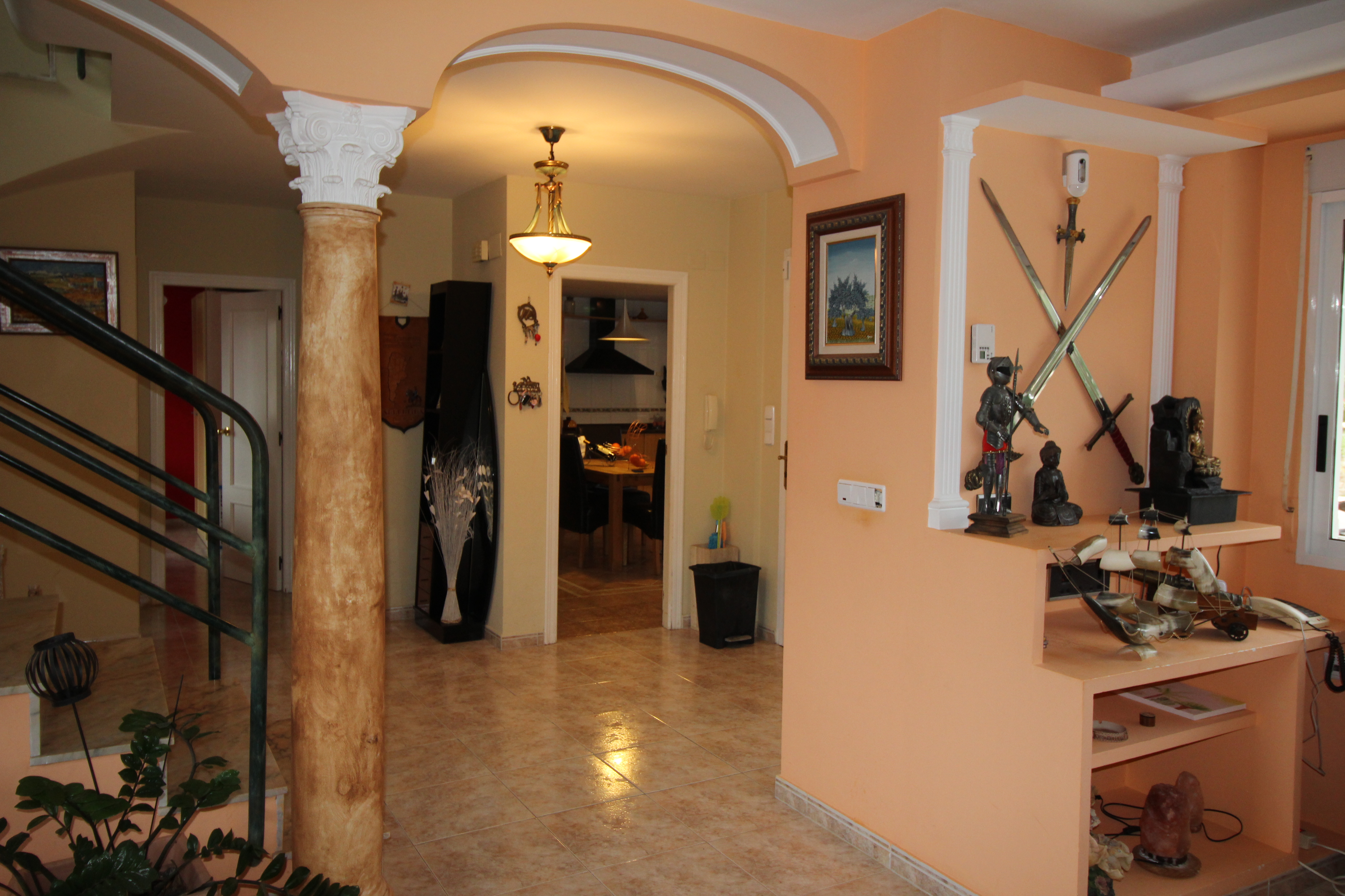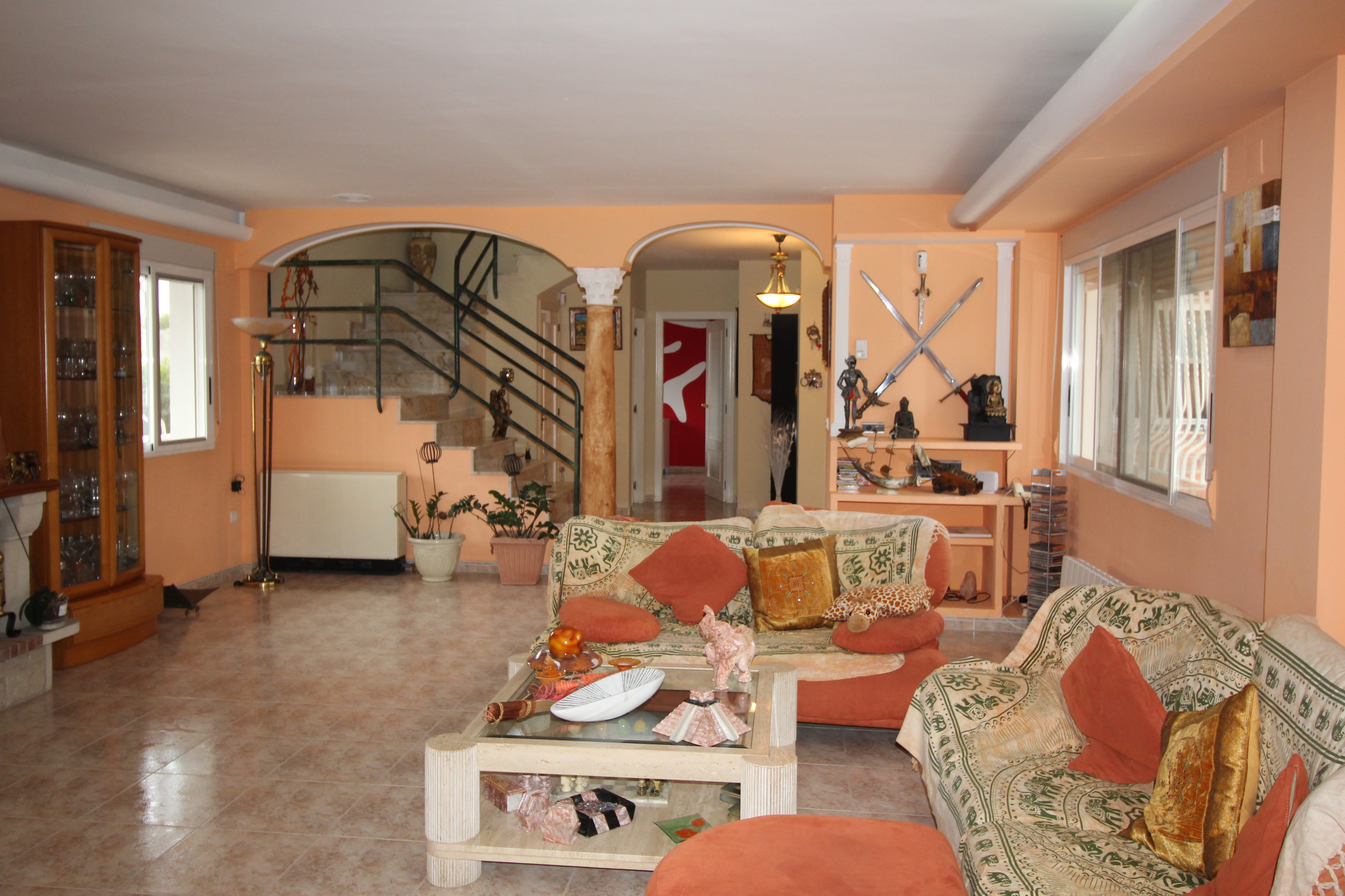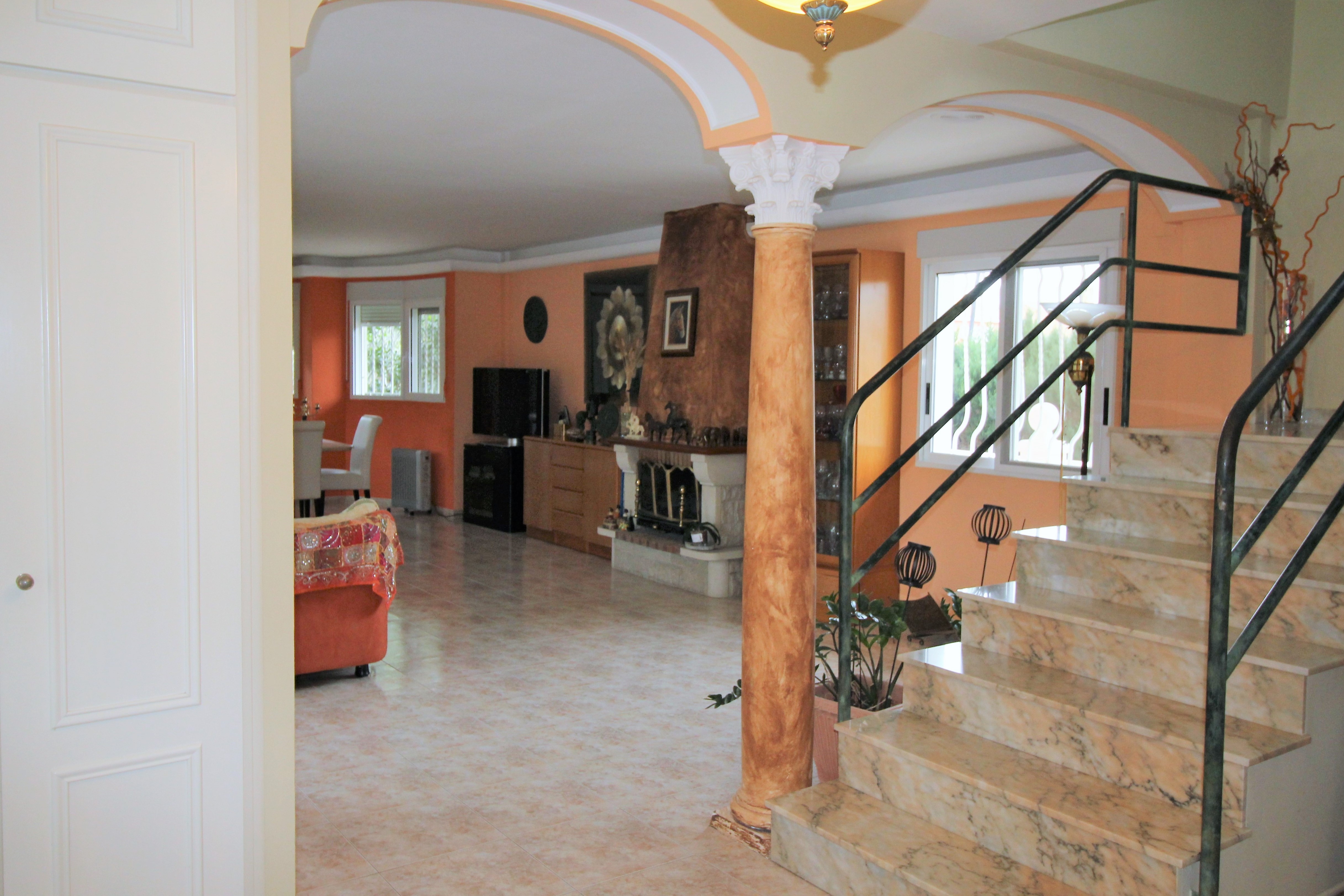 The villa has 390 m2 built on three floors, the air conditioning is by heat accumulators, fireplace, air conditioning, cool music, piped music. The house has three large bedrooms with fitted wardrobes, four bathrooms, a large living room of 60 m2 with beautiful views of the garden. Fully equipped kitchen with access to the covered terrace and pool.