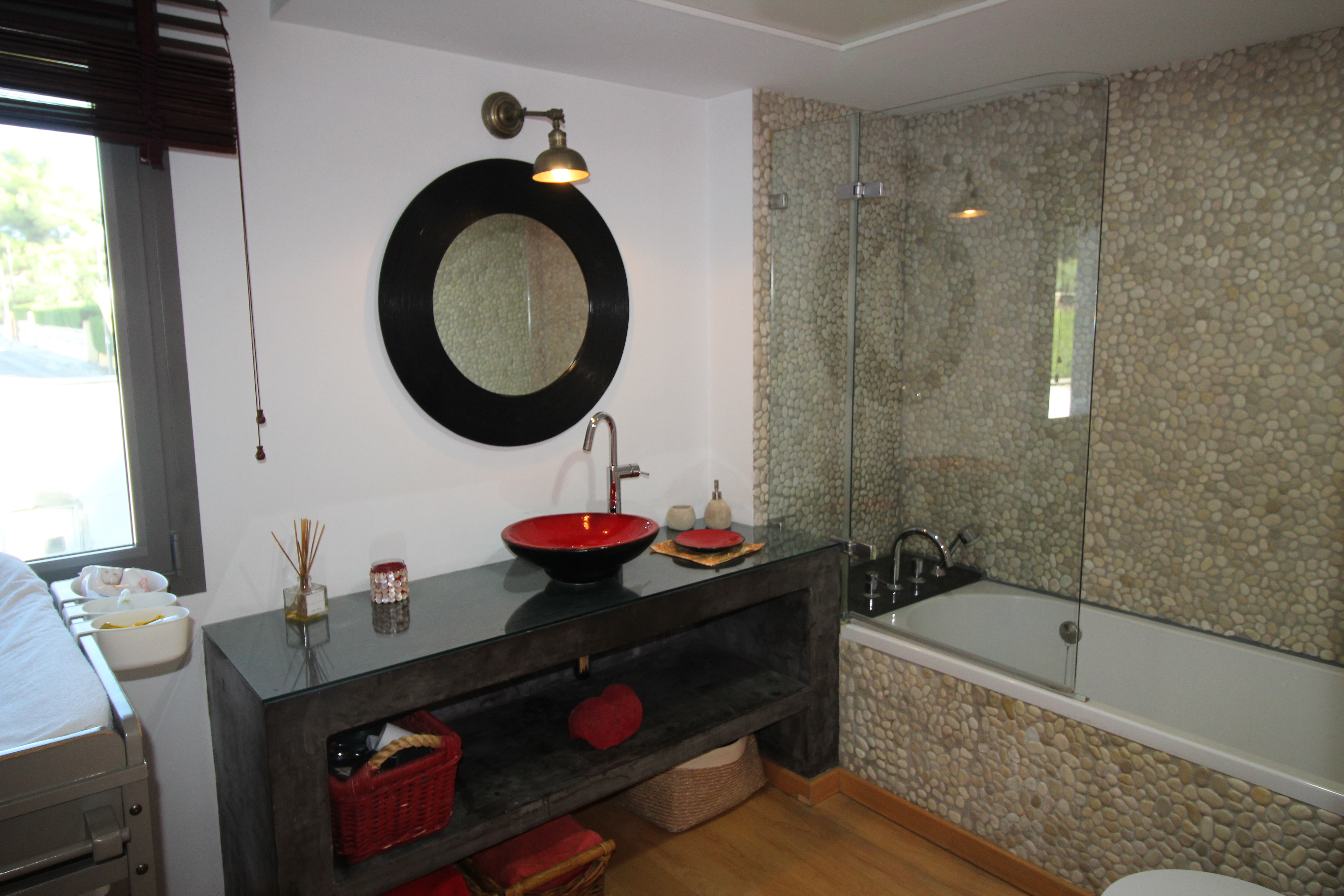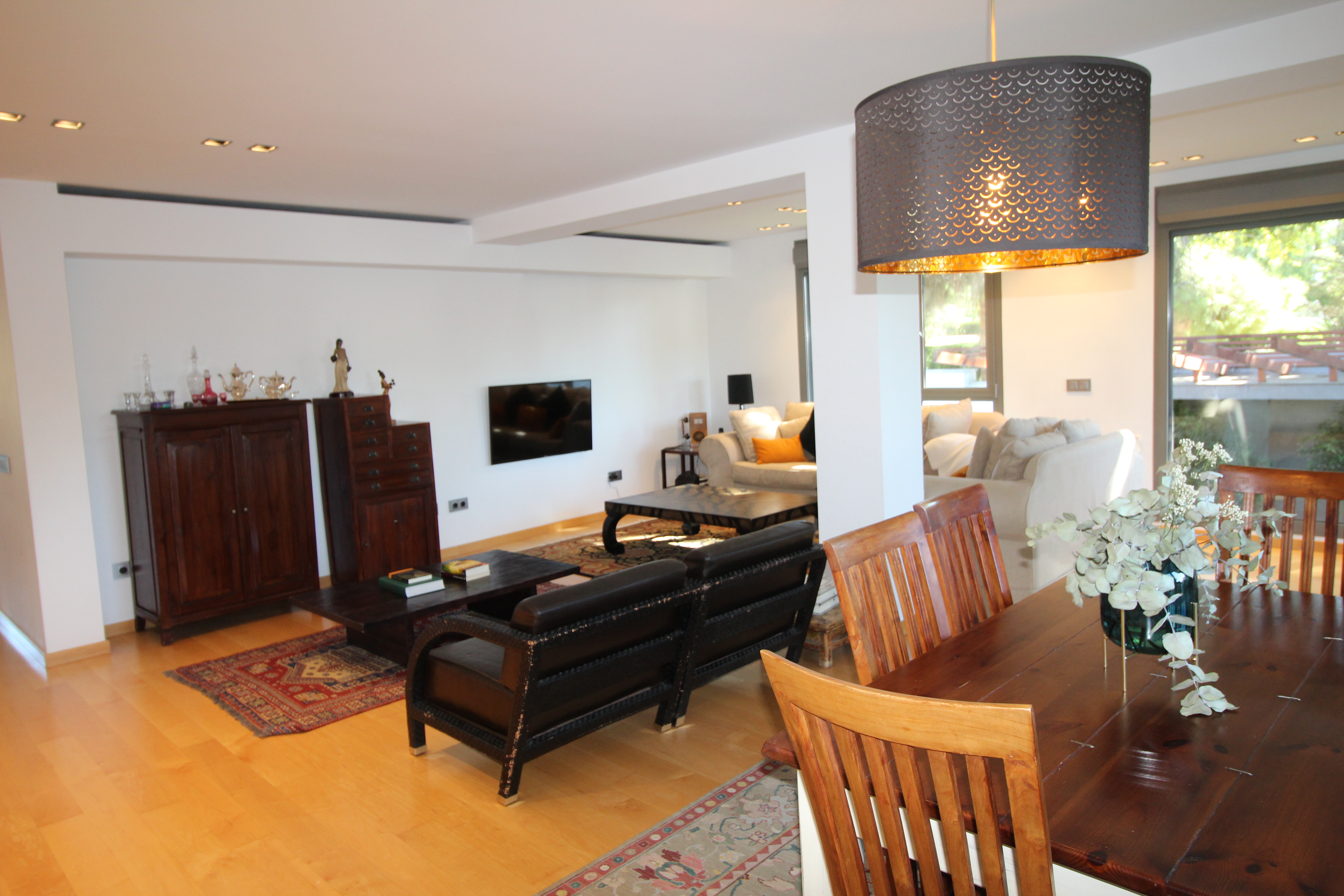 The downstairs consists of two spacious rooms, a lovely bathroom, kitchen, multifunctional room from which there is access to the garden. This floor is linked to the outdoor areas, garden and pool area. Here we also find a fantastic covered barbecue area, as well as a lovely terrace.