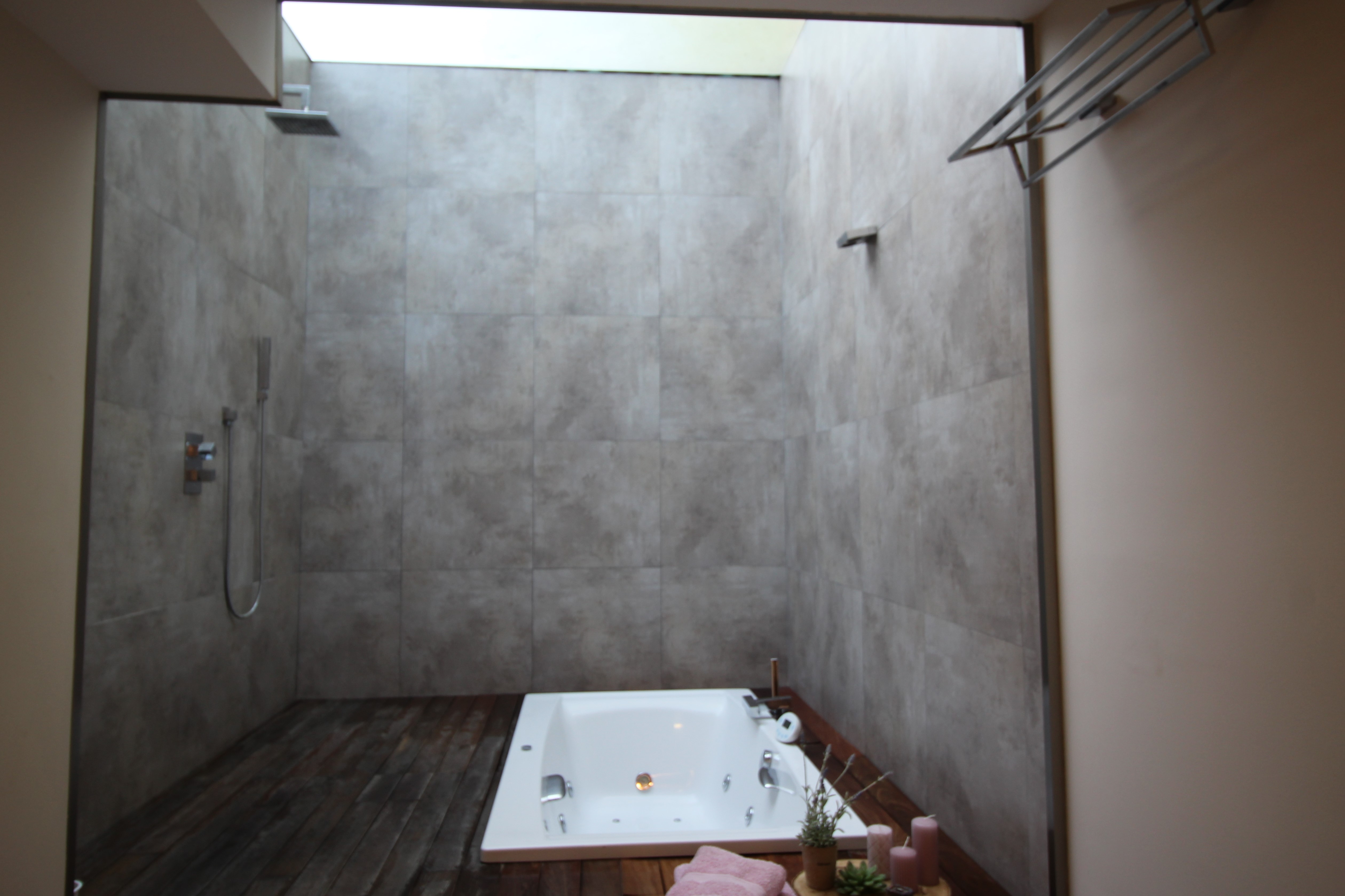 On the first floor there are three bedrooms; "masterbedroom", with a huge "walkin closet", two double bedrooms, with fitted wardrobes, a spacious bathroom with jacuzzi and amazing skylight.