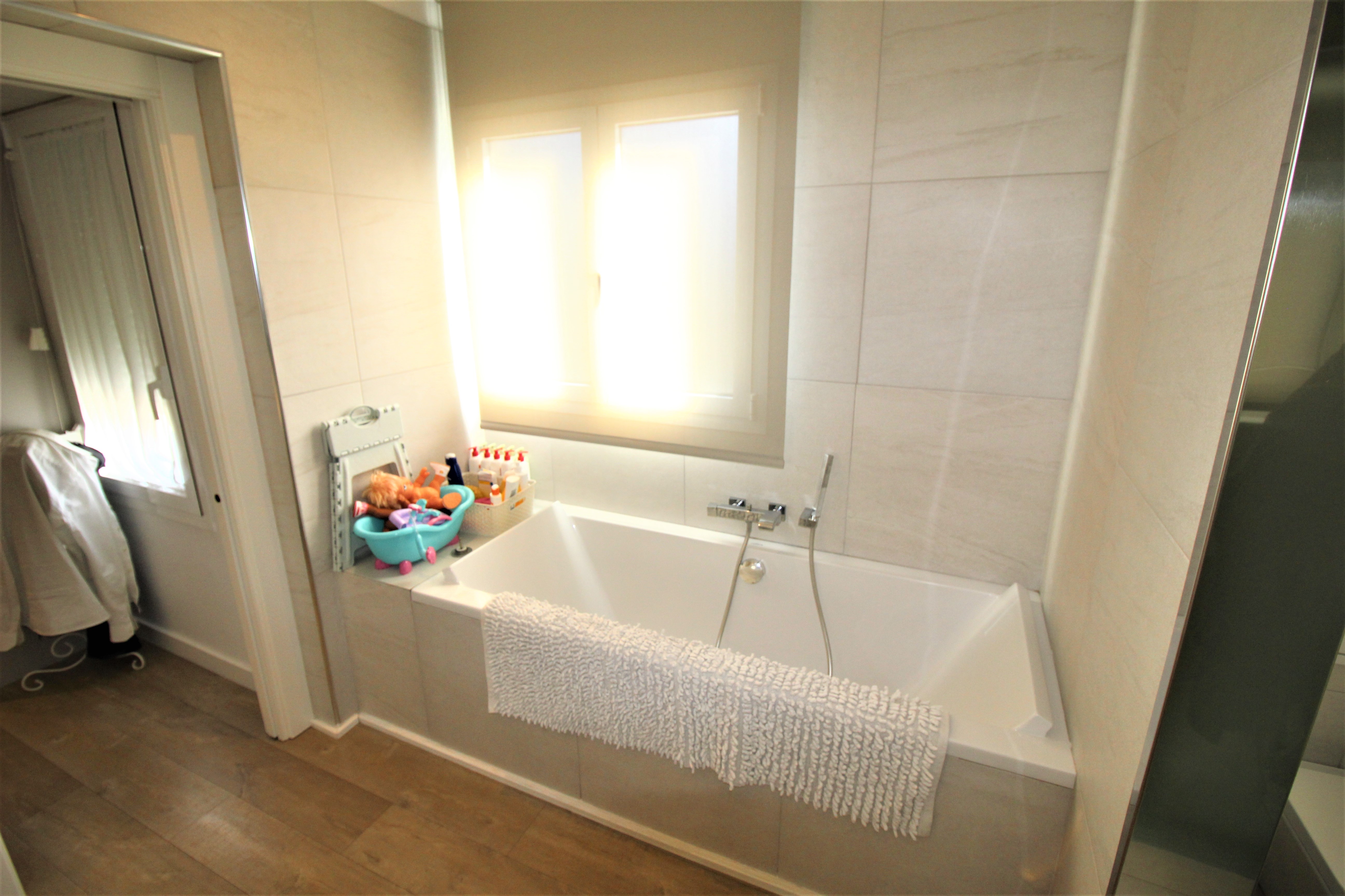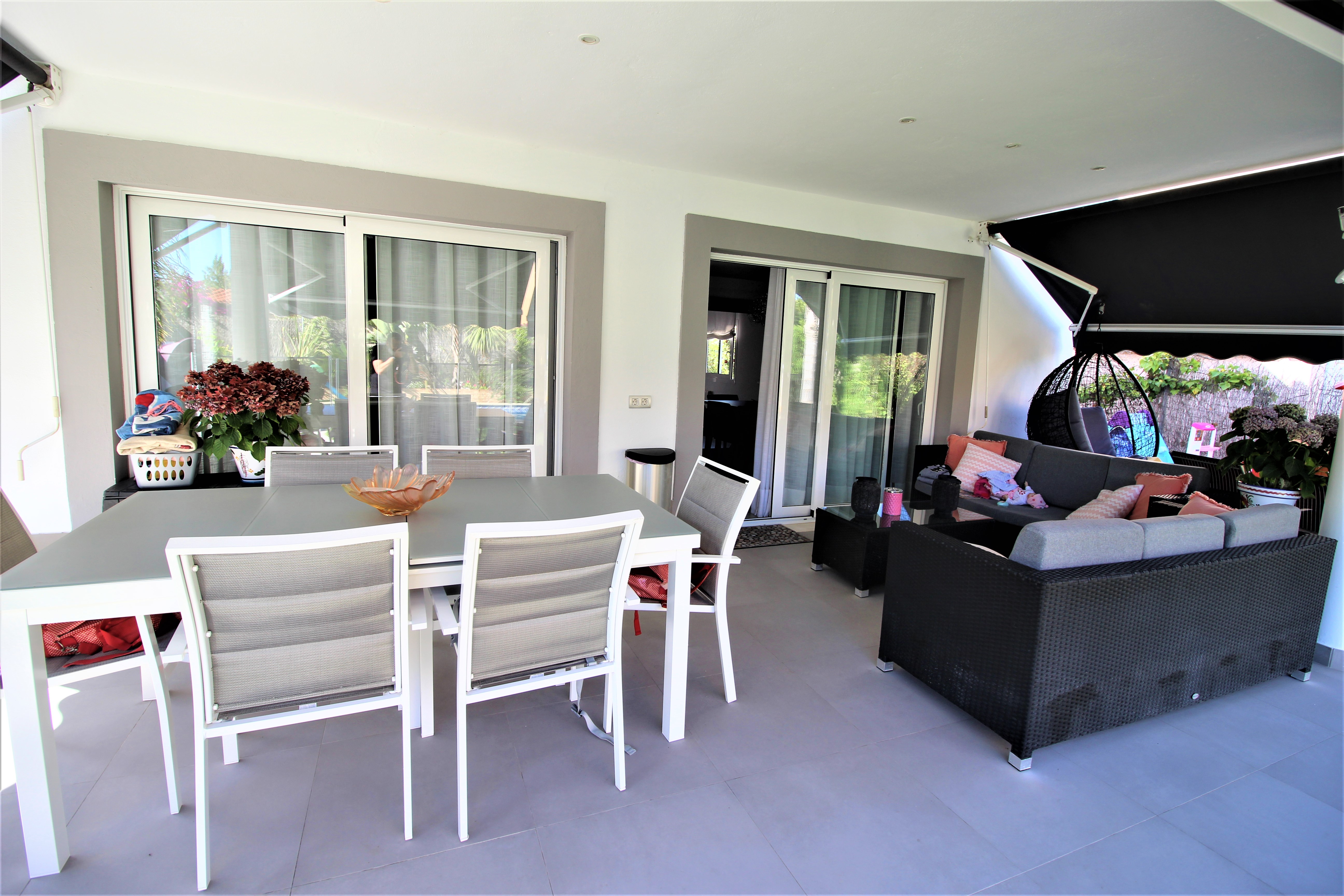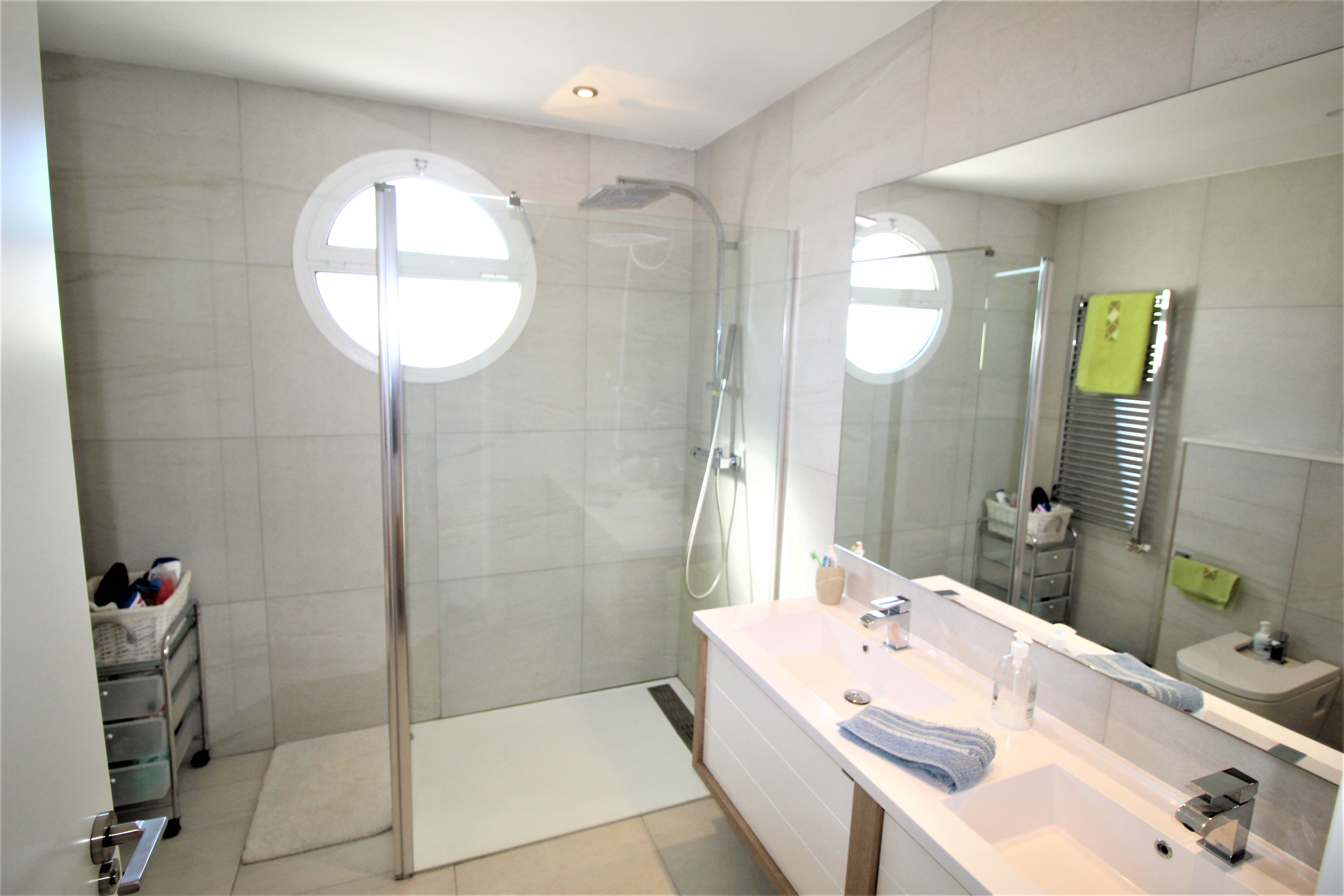 This beautiful south facing Villa of 200m2 contains 4 rooms and 3 bathrooms in addition to a large kitchen in extension with the living room. From the large living room there is direct access to one of the two terraces and the garden and pool area.