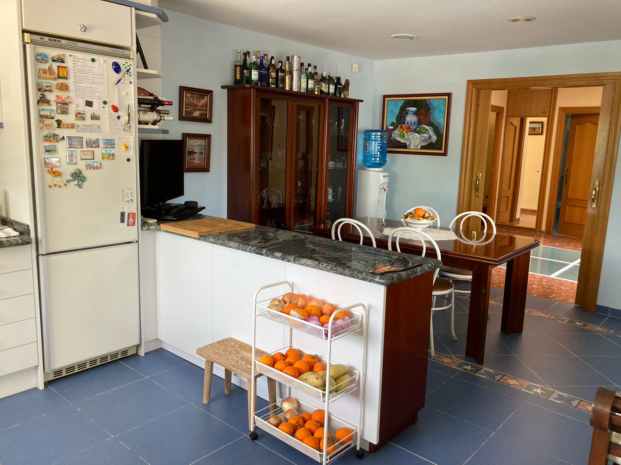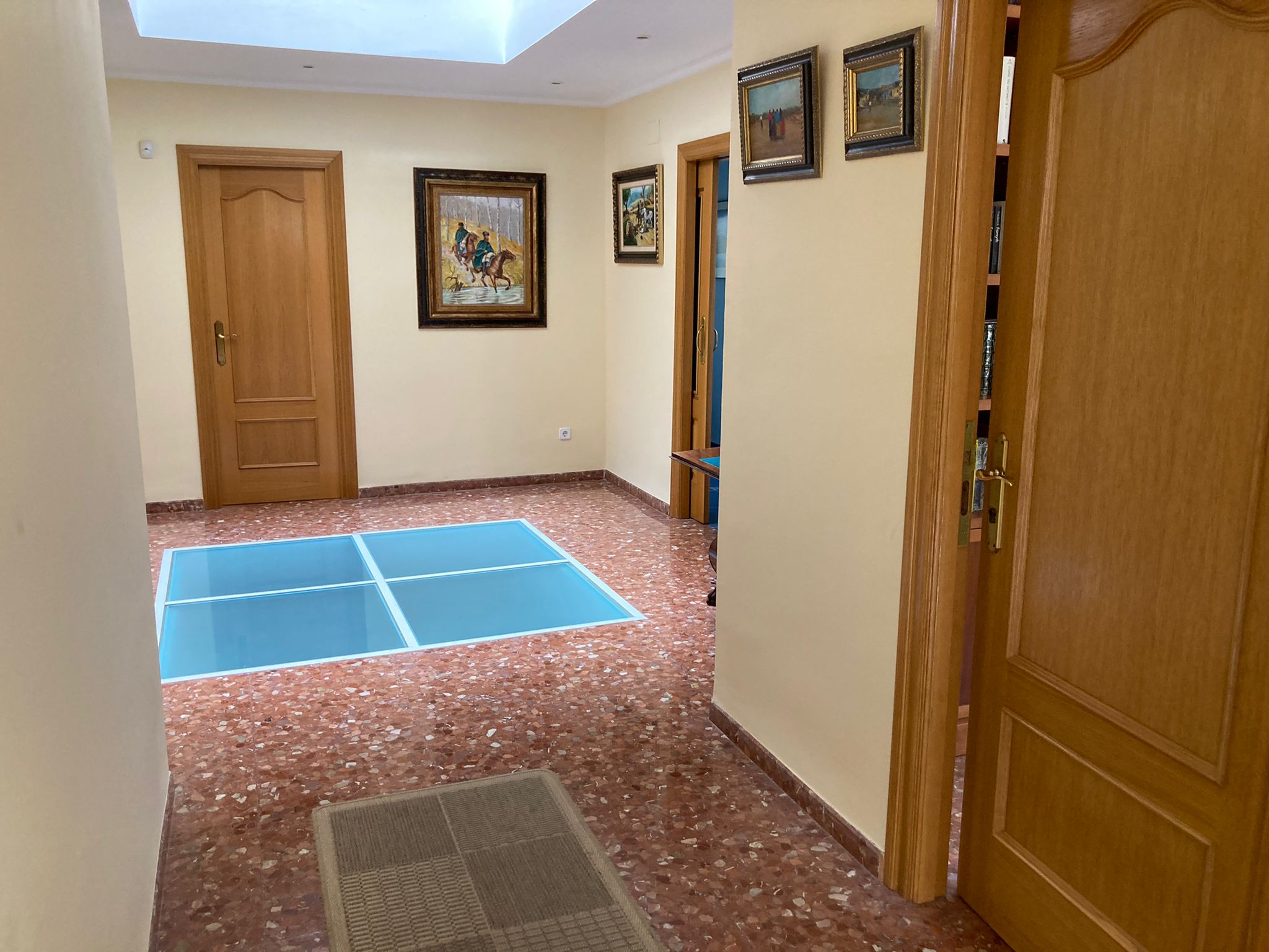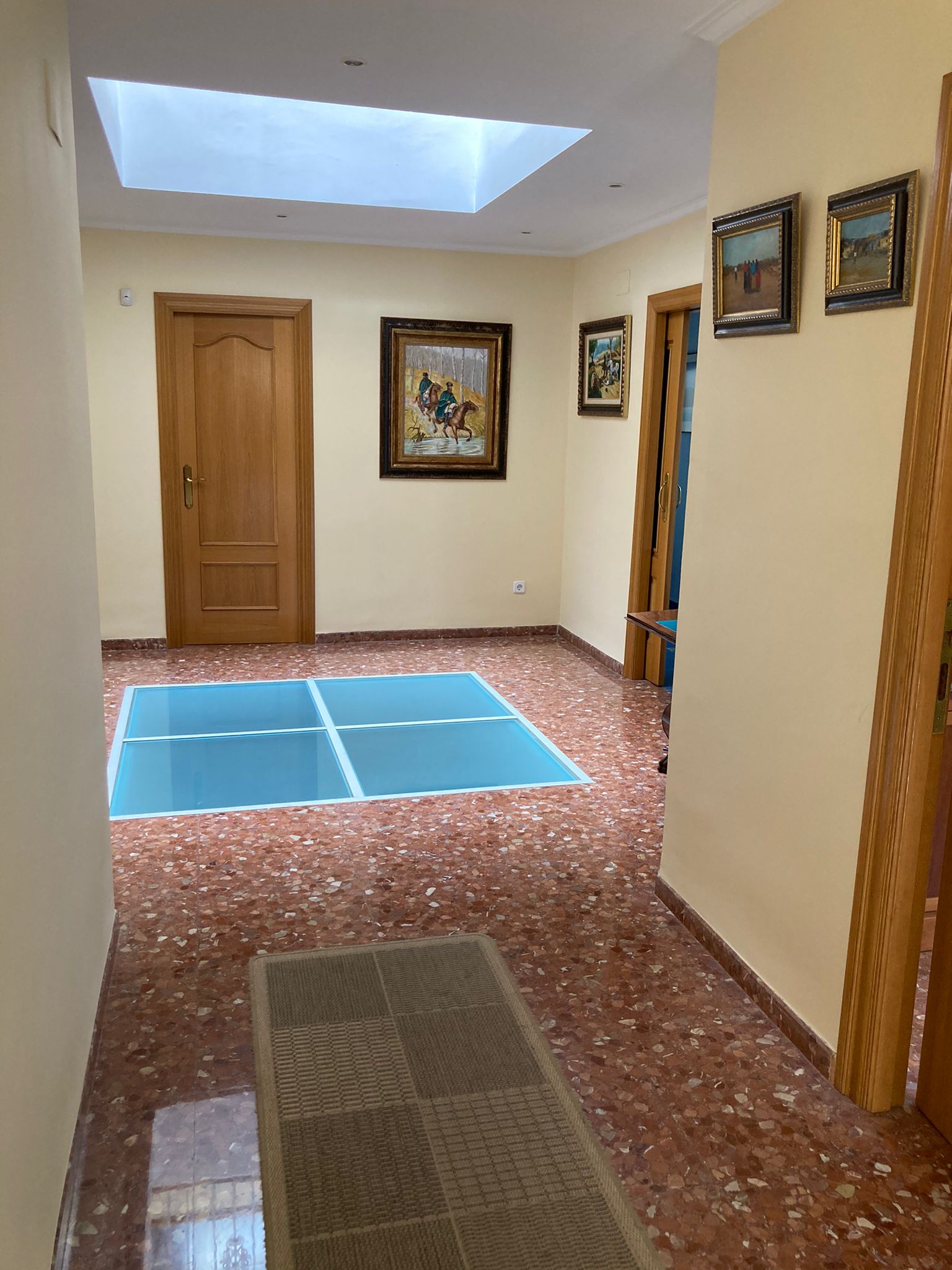 We enter the house through the main floor where you find the very bright lobby, with a skylight that gives the three floors a lot of lighting. On this floor there is a dining room, currently used as a Library, a large kitchen, with access to the covered terrace. Separate laundry room and large pantry. It also has two double bedrooms and a full bathroom.