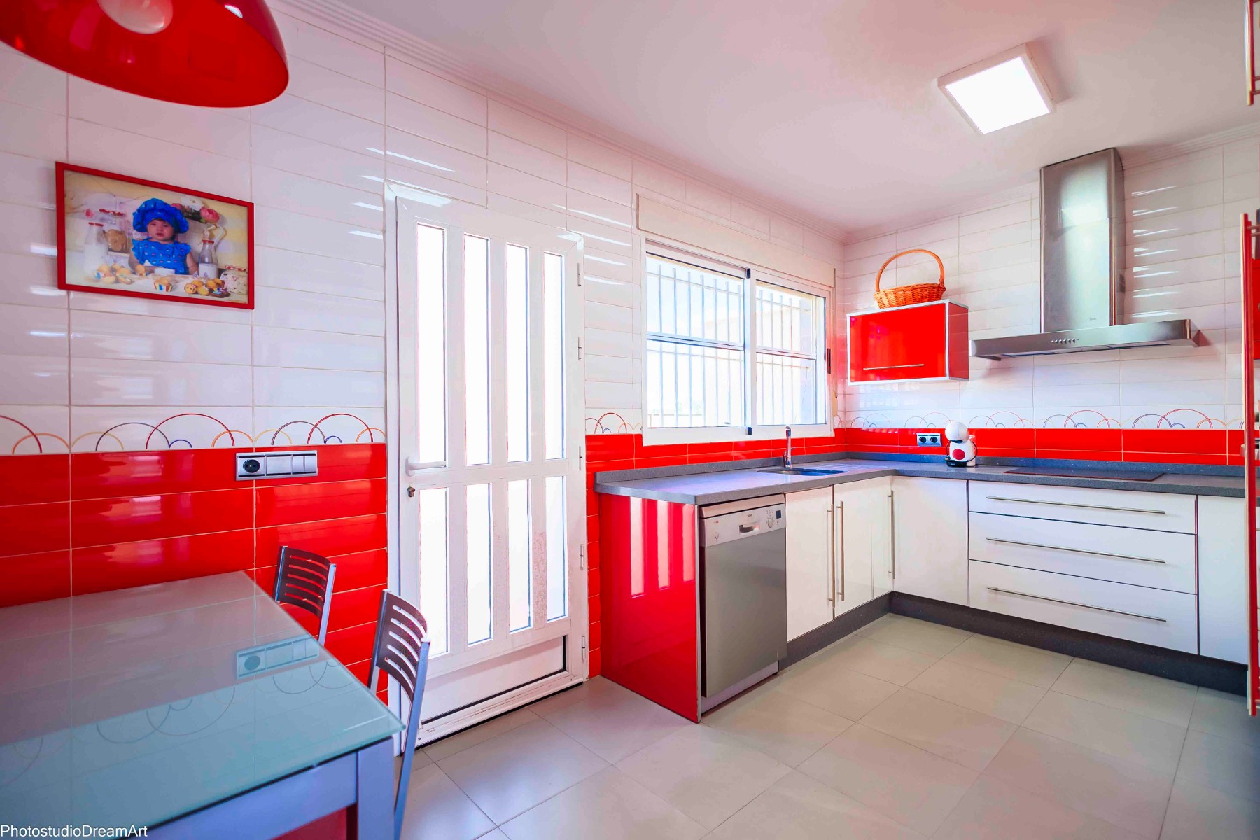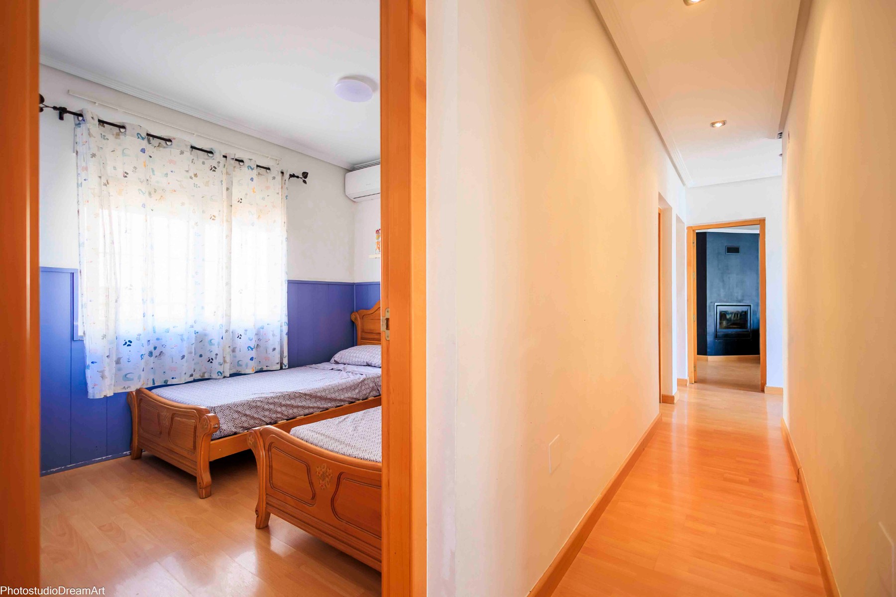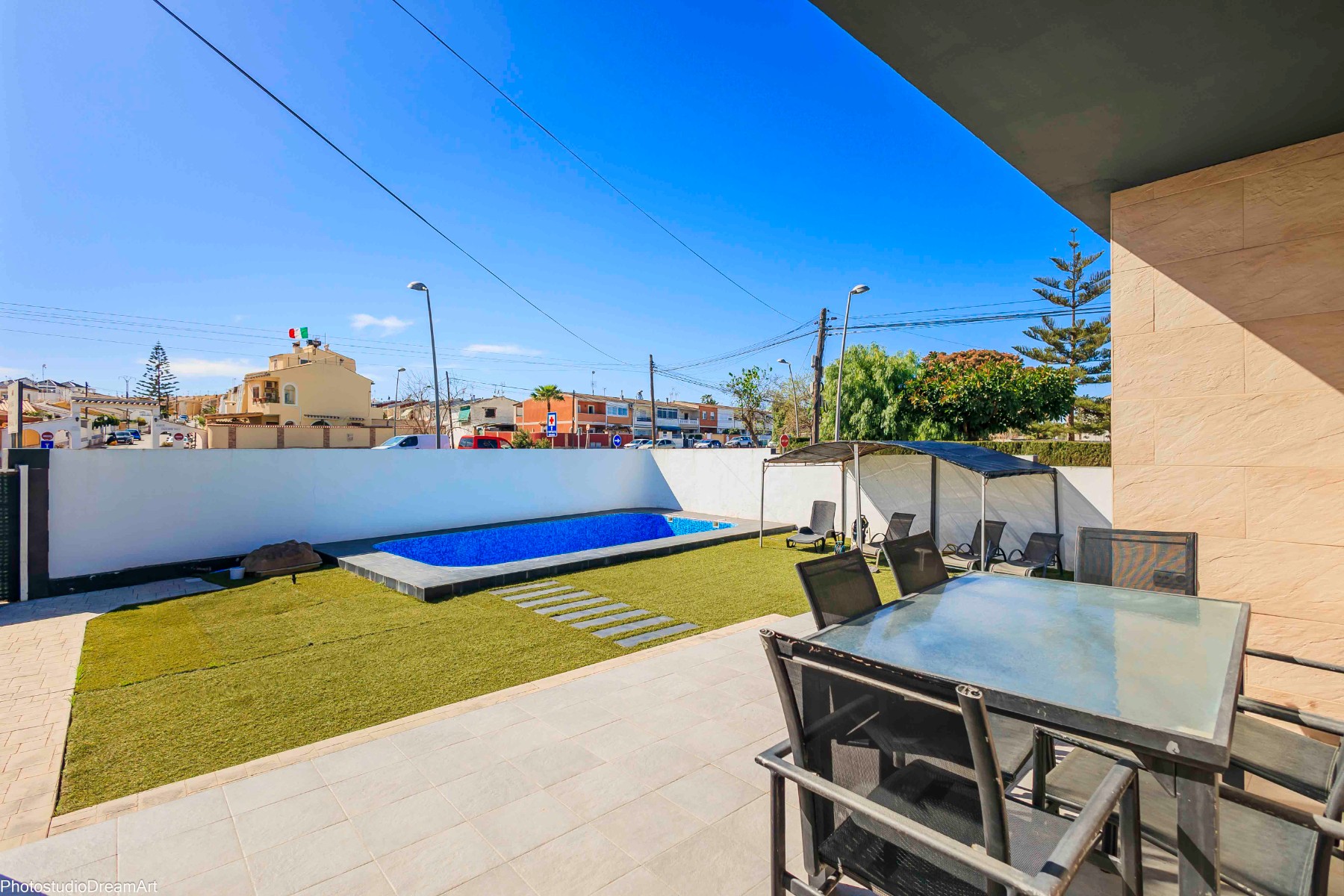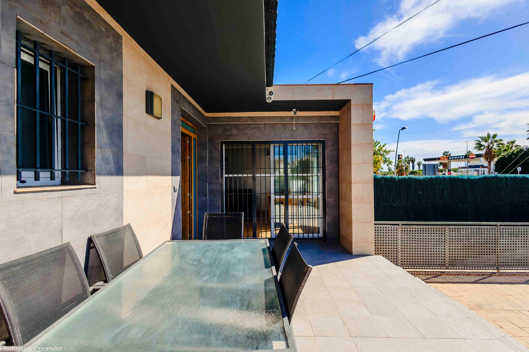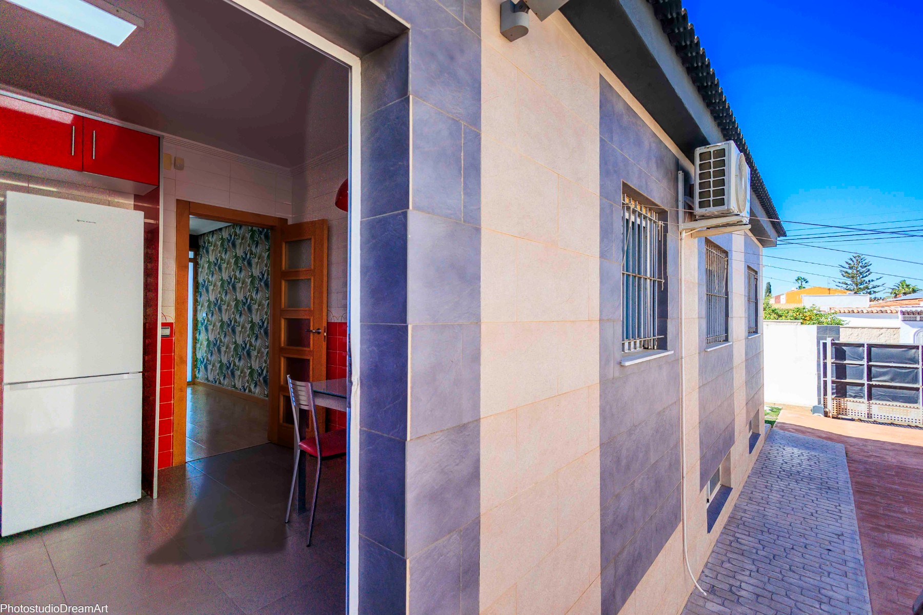 Beautiful villa for sale on Calle Ukraine, the house has 3 bedrooms, 2 full bathrooms, dressing room, separate kitchen, living room with fireplace, private pool, garden and a 100 square meter garage. It has two entrances, one of them with a motorized door with space for several vehicles. The location is fantastic, close to supermarkets, restaurants, 5 minutes from Torrevieja. Come visit it!