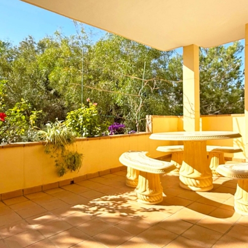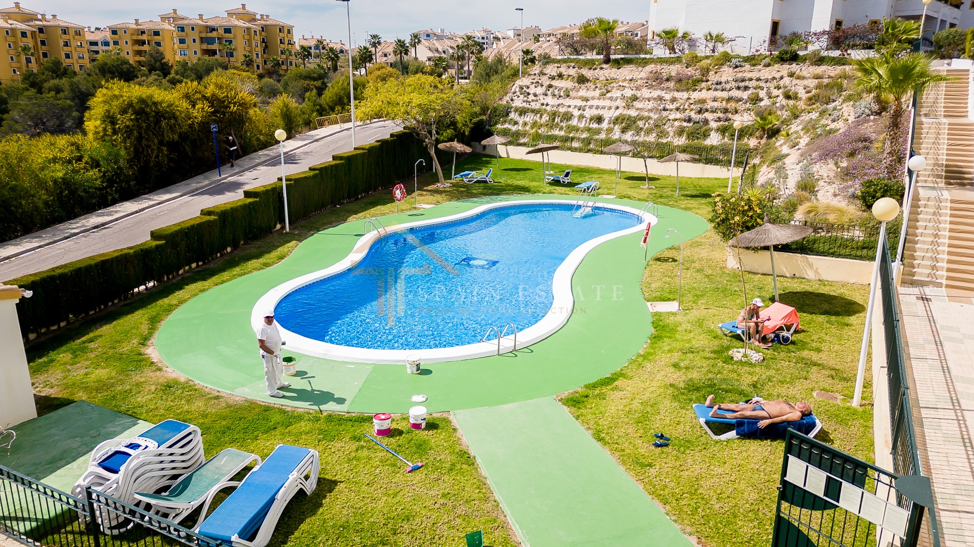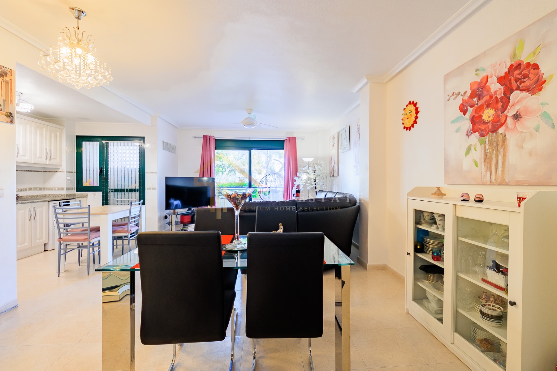 Upon entering the apartment you are greeted by a beautifully designed kitchen and open hallway, perfect for entertaining guests or simply spending time with loved ones. The kitchen is fully equipped with high-quality appliances, so you can easily prepare delicious meals. The living room is tastefully decorated and opens onto the private terrace, the perfect place to enjoy your morning coffee or a glass of wine. This hotel also offers access to a communal pool and communal areas, perfect for sunbathing and socializing with neighbours. The Villamartin area is renowned for its stunning natural beauty and abundance of amenities, including world-class golf courses, pristine beaches and an array of restaurants and cafes. With its fantastic location, luxurious facilities and beautiful surroundings, these ground floor apartments provide an ideal base for those seeking comfort and style in the heart of Villamartin. Don't miss this amazing opportunity to make this place your home! Further information +34 6345 130 717 ÖZER.