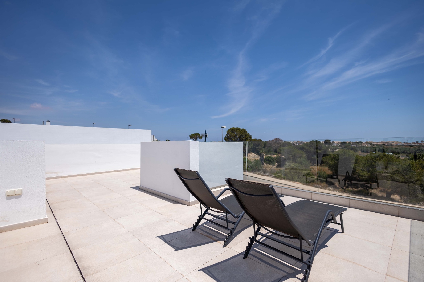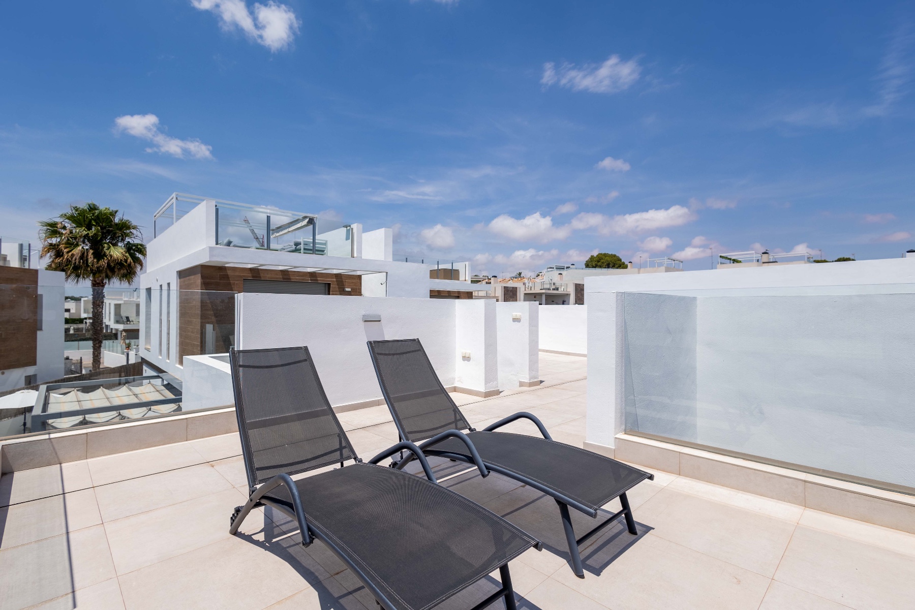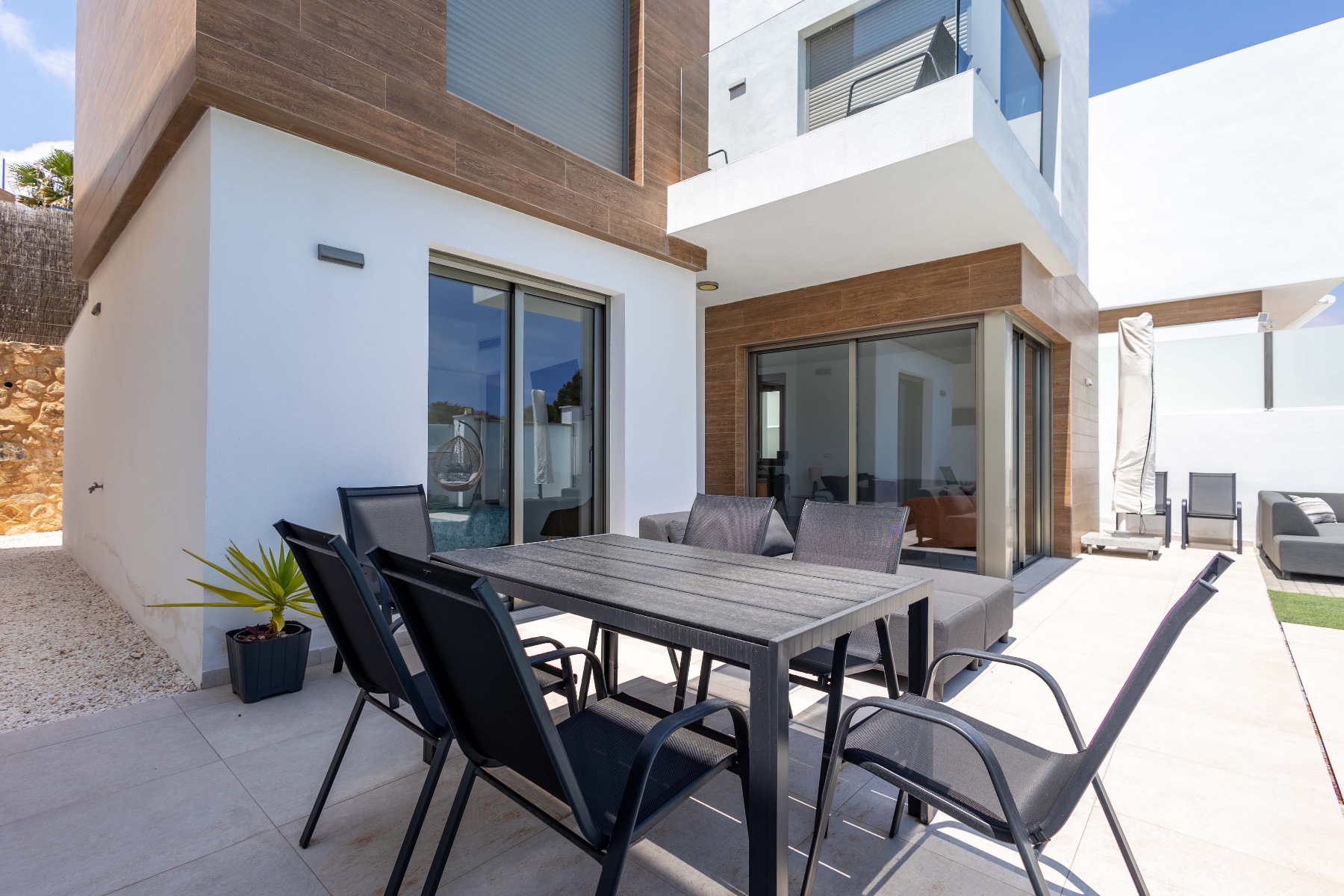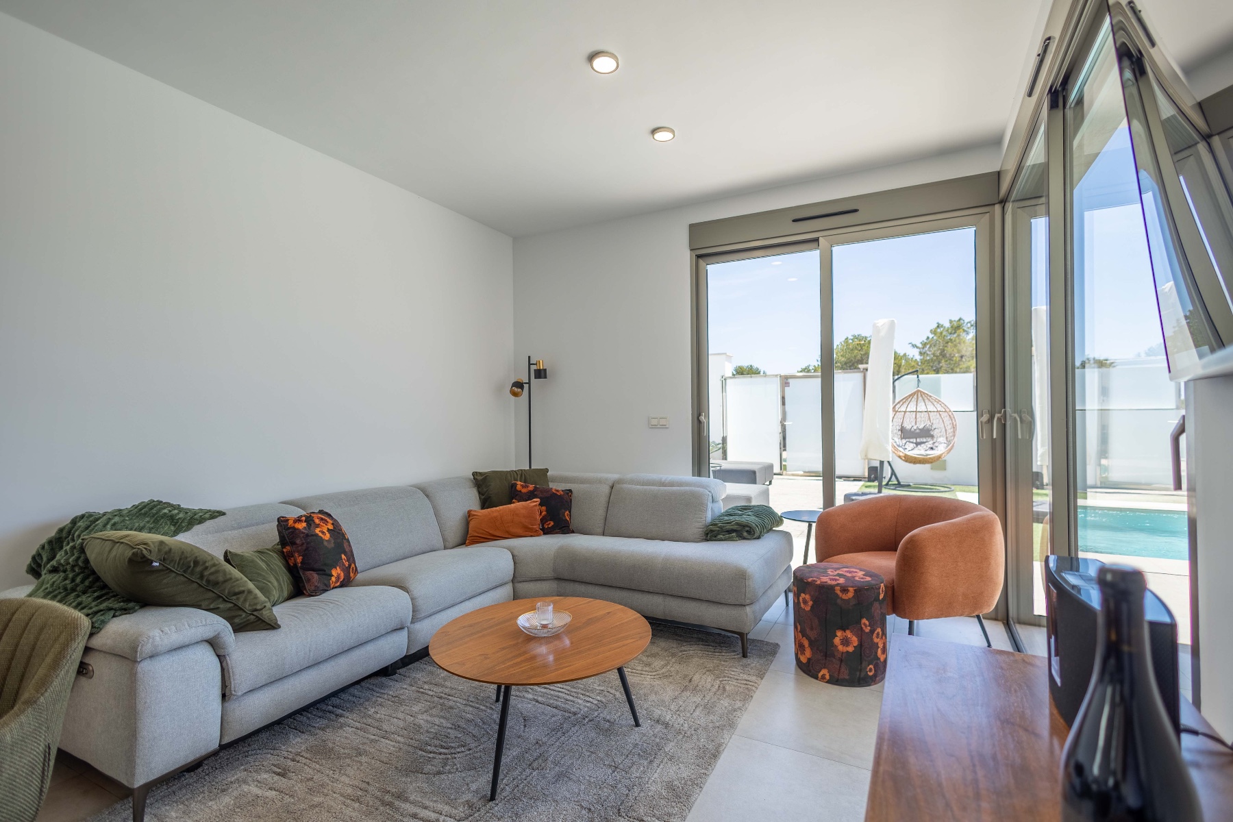 Modern villa in Villamartin – Luxury and comfort in Las Filipinas Orihuela Costa – Torrevieja Discover this magnificent modern villa in Villamartin, one of the most exclusive areas of Torrevieja. This impressive 178 m² property has been designed for those seeking elegance and comfort. It has four spacious bedrooms , all with en suite bathrooms , three of which have dressing rooms on the ground floor , ensuring privacy and comfort in every corner. The open plan living room with its large windows flows seamlessly into the modern and functional kitchen , creating an ideal place to socialise with family or friends. On the ground floor there is a guest toilet and a bedroom with en suite bathroom. The highlight of the house is its impressive private swimming pool , perfect for cooling off on sunny days. The large terrace invites you to relax and enjoy unforgettable evenings. A convenient parking space is also available. Excellent location This villa is located in a quiet area with good connections, close to supermarkets, restaurants, pharmacies and shopping centers . Within walking distance you can enjoy the beaches of Torrevieja, the La Mata Natural Park and the best golf courses on the Costa Blanca . Main features 178 m² living space Four bedrooms with private bathrooms. Three wardrobes Private pool South facing for maximum natural light. Used property in excellent condition If you are looking for an exclusive home with all the modern comforts , this modern villa in Villamartin is the perfect choice. Don't miss this opportunity. For more information or to book a visit, please contact us at +34 635 130 717