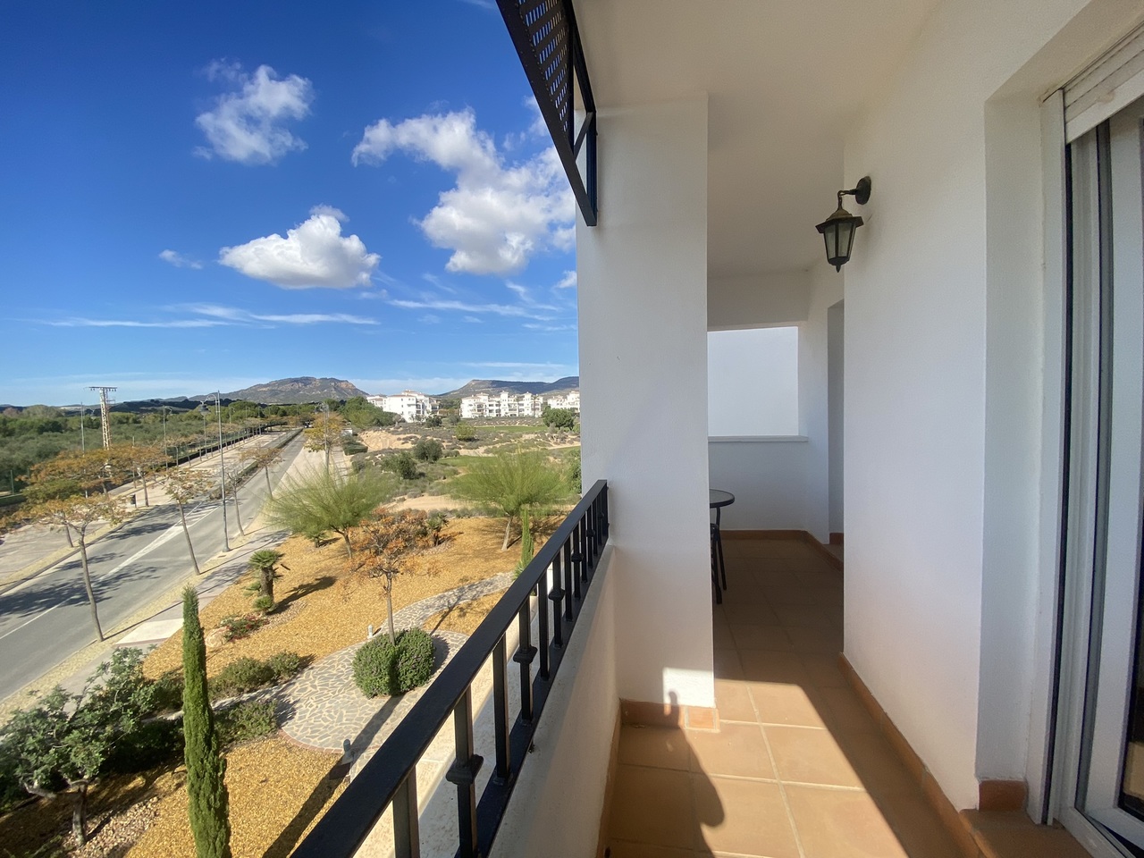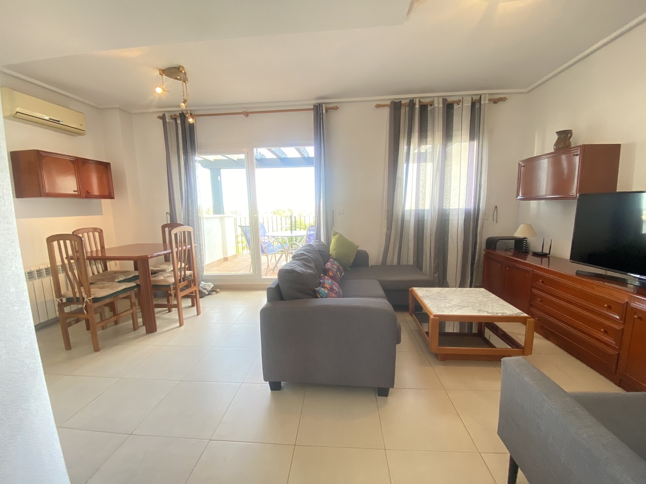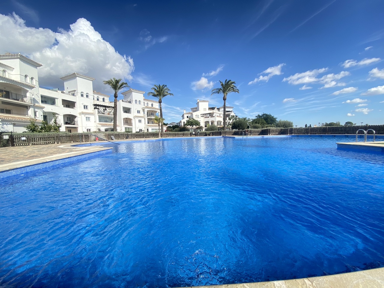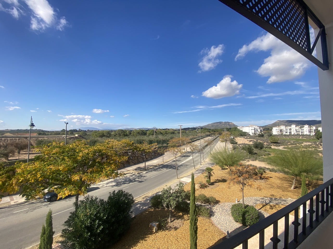 Charming Apartment for Sale in Hacienda Riquelme Golf Resort Welcome to one of the most sought-after apartments in Hacienda Riquelme Golf Resort! This unique two-bedroom, one-bathroom residence stands out with its spacious round-walled living room and an expanded kitchen, offering extra room and comfort. The apartment features a cozy rear terrace overlooking a beautiful orange grove, perfect for enjoying peaceful mornings. The main terrace, accessible from the living room, boasts a lovely pergola and stunning views of the golf course, providing a picturesque spot for relaxation and entertainment. Located just a 10-minute walk from the clubhouse, this apartment not only enjoys extraordinary views but is also ideally positioned within the lush, well-maintained grounds of Hacienda Riquelme Golf Resort. Residents here benefit from 24/7 security and a range of amenities, including the popular El Casón bar and restaurant, a small on-site supermarket, and stunning mountain views behind the complex. Conveniently situated just five minutes by car from the charming Murcian village of Sucina, 15 minutes from the nearest beach, and 20 minutes from Murcia Airport, this is the perfect home for those looking to blend tranquility, convenience, and breathtaking surroundings. Experience the best of resort living with this exceptional apartment – a true oasis of peace and beauty.