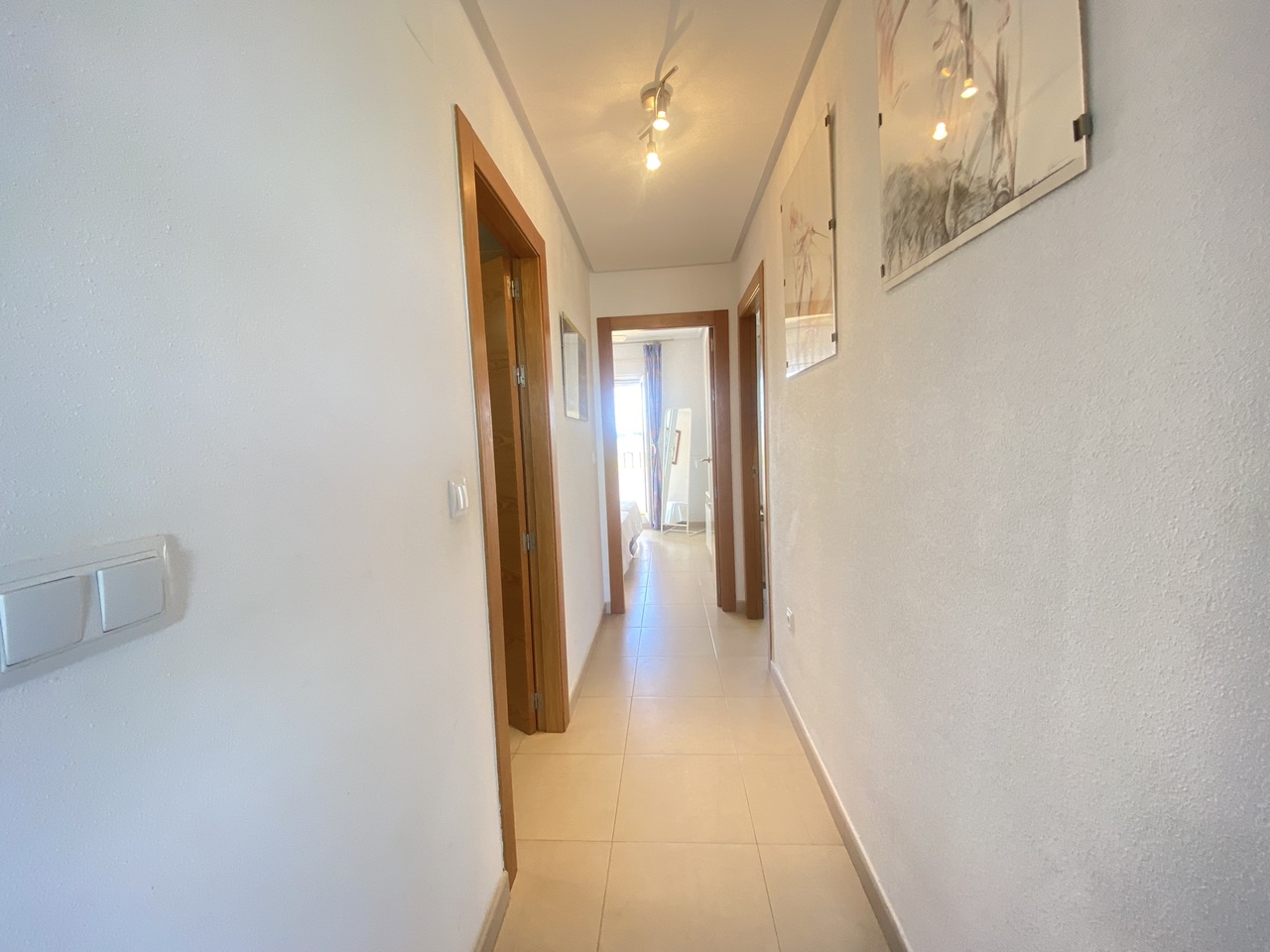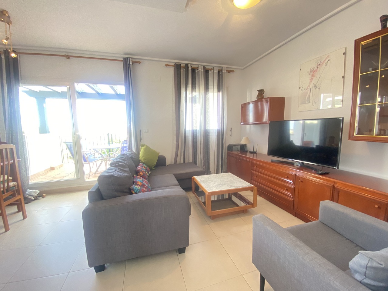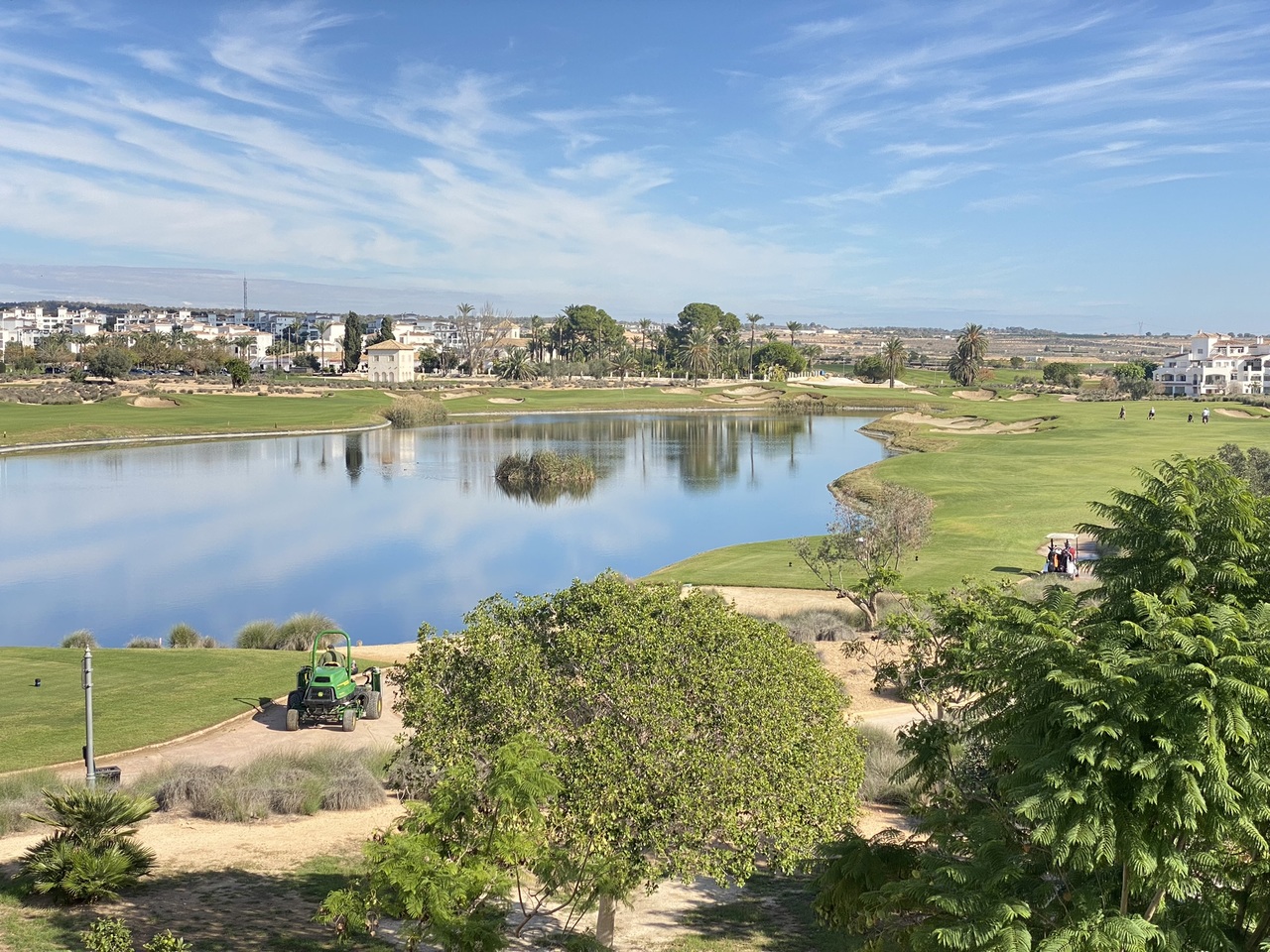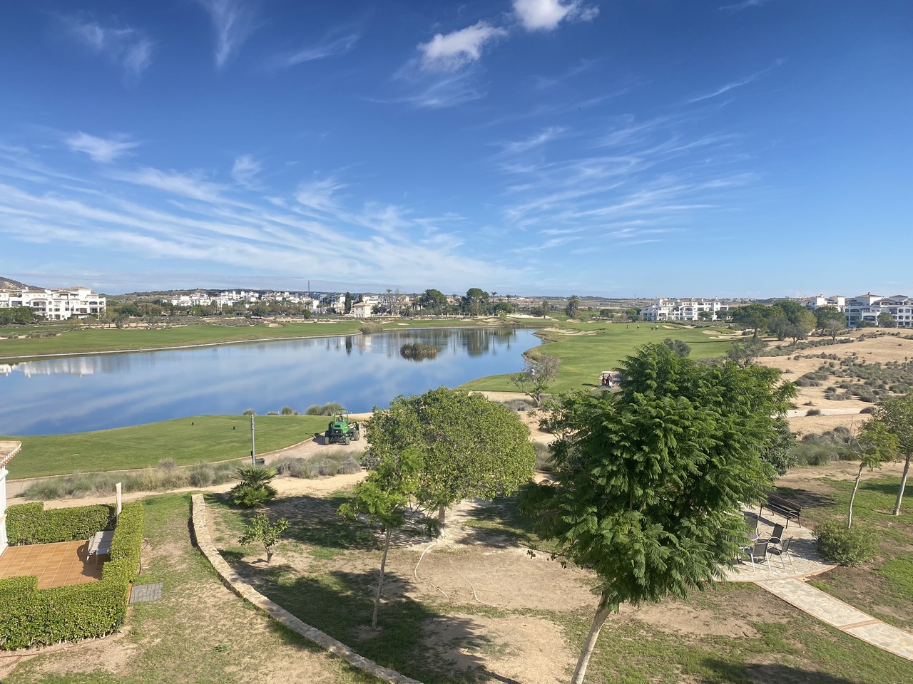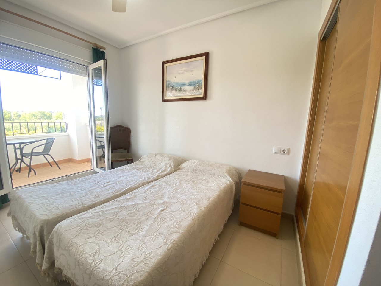 Charming Apartment for Sale in Hacienda Riquelme Golf Resort Welcome to one of the most sought-after apartments in Hacienda Riquelme Golf Resort! This unique two-bedroom, one-bathroom residence stands out with its spacious round-walled living room and an expanded kitchen, offering extra room and comfort. The apartment features a cozy rear terrace overlooking a beautiful orange grove, perfect for enjoying peaceful mornings. The main terrace, accessible from the living room, boasts a lovely pergola and stunning views of the golf course, providing a picturesque spot for relaxation and entertainment. Located just a 10-minute walk from the clubhouse, this apartment not only enjoys extraordinary views but is also ideally positioned within the lush, well-maintained grounds of Hacienda Riquelme Golf Resort. Residents here benefit from 24/7 security and a range of amenities, including the popular El Casón bar and restaurant, a small on-site supermarket, and stunning mountain views behind the complex. Conveniently situated just five minutes by car from the charming Murcian village of Sucina, 15 minutes from the nearest beach, and 20 minutes from Murcia Airport, this is the perfect home for those looking to blend tranquility, convenience, and breathtaking surroundings. Experience the best of resort living with this exceptional apartment – a true oasis of peace and beauty.