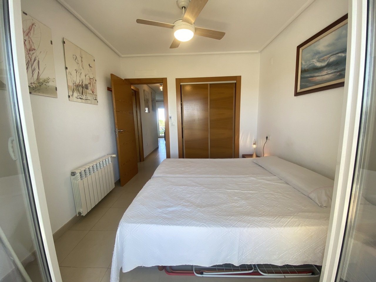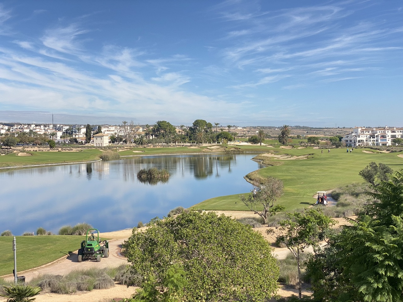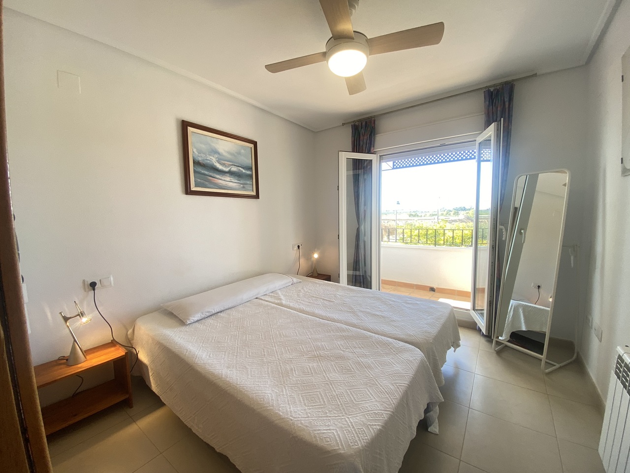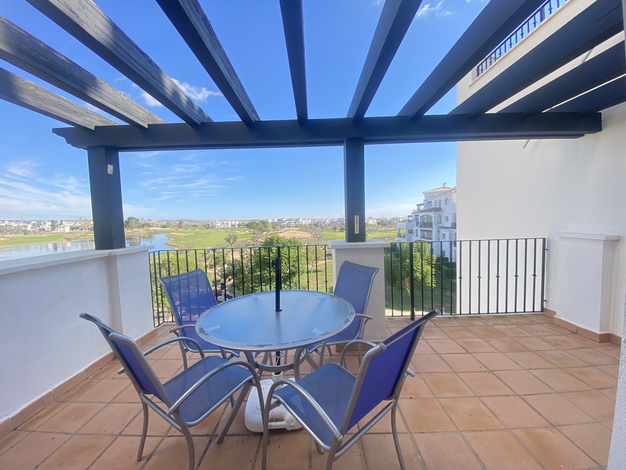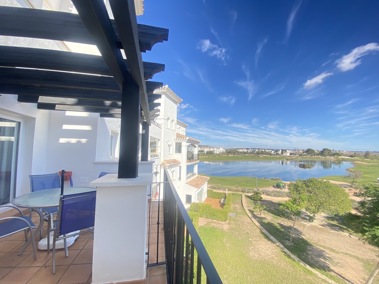 Charming Apartment for Sale in Hacienda Riquelme Golf Resort Welcome to one of the most sought-after apartments in Hacienda Riquelme Golf Resort! This unique two-bedroom, one-bathroom residence stands out with its spacious round-walled living room and an expanded kitchen, offering extra room and comfort. The apartment features a cozy rear terrace overlooking a beautiful orange grove, perfect for enjoying peaceful mornings. The main terrace, accessible from the living room, boasts a lovely pergola and stunning views of the golf course, providing a picturesque spot for relaxation and entertainment. Located just a 10-minute walk from the clubhouse, this apartment not only enjoys extraordinary views but is also ideally positioned within the lush, well-maintained grounds of Hacienda Riquelme Golf Resort. Residents here benefit from 24/7 security and a range of amenities, including the popular El Casón bar and restaurant, a small on-site supermarket, and stunning mountain views behind the complex. Conveniently situated just five minutes by car from the charming Murcian village of Sucina, 15 minutes from the nearest beach, and 20 minutes from Murcia Airport, this is the perfect home for those looking to blend tranquility, convenience, and breathtaking surroundings. Experience the best of resort living with this exceptional apartment – a true oasis of peace and beauty.