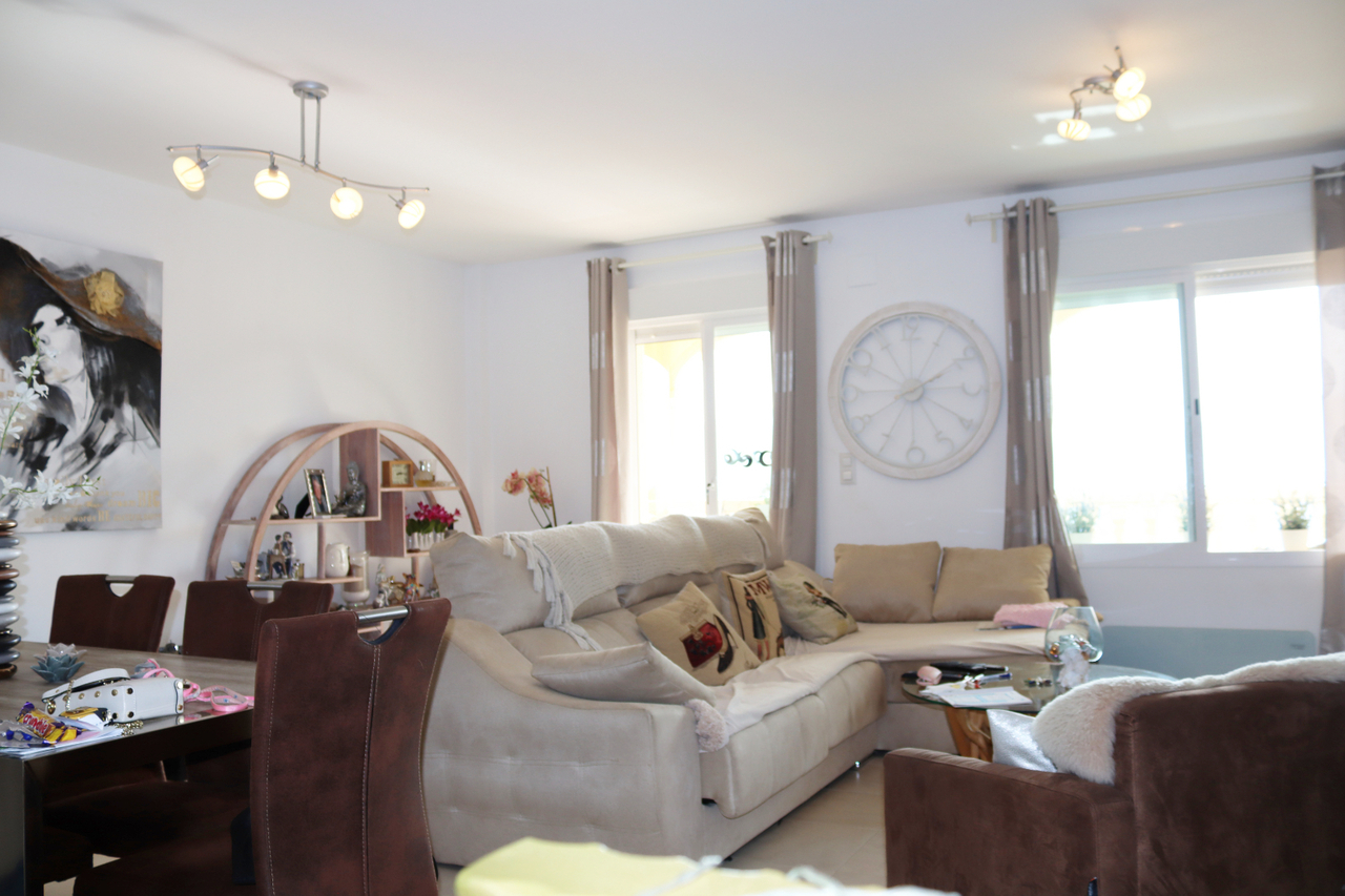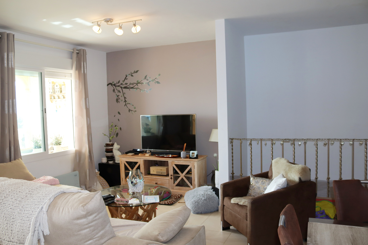 New to the market this well presented 3 bedroom, 2 bathroom linked townhouse with communal pool in a sought after location on the outskirts of Jalon.Built to a very high standard and very well maintained this south facing property enjoys amazing views across the beautiful Jalon Valley with its picturesque villages and mountainsFrom the residents only parking area a short flight of steps lead down to the main entrance of the property. The front door opens into a spacious entrance hall with the accommodation on this level comprising: double bedroom 1 with built in wardrobes and ceiling fan; the family bathroom with full bath, basin set in a modern vanity and WC; modern fully fitted kitchen with ample workspace, integrated appliances and breakfast bar; fabulous bright and spacious lounge with access onto the large private balcony with full glass curtains, giving you an extra living space and a wonderful winter lounge area with stunning mountain and valley views.From the lounge stairs lead to the lower level of the property where the accommodation comprises: Family shower room and double bedrooms 2 and 3 both with built in wardrobes, ceiling fans and access onto the lower balcony.The property enjoys the benefit of a stunning communal pool with beautifully maintained sun terrace and garden areas.A superb property maintained to a particularly high standard with the benefit of resident only parking, fabulous communal pool and stunning views.This property would make an ideal permanent residence or holiday home with definite letting potential, a fabulous property which needs to be viewed to be fully appreciated.SPECIFICATION INCLUDES: Private Parking, Communal Pool, Double Glazing, Hot and Cold Air Conditioning, Ceiling Fans, Built in Wardrobes; Private Balconies, Glass CurtainsThe Property Team know that buying a property in Spain is a huge decision but with our local knowledge we can guide you through the process and answer any questions or concerns you may have. We are always contactable whenever you need us and if no properties on our own website meet fully with your requirements just let us know what you are looking for and we will search for the right property for you.