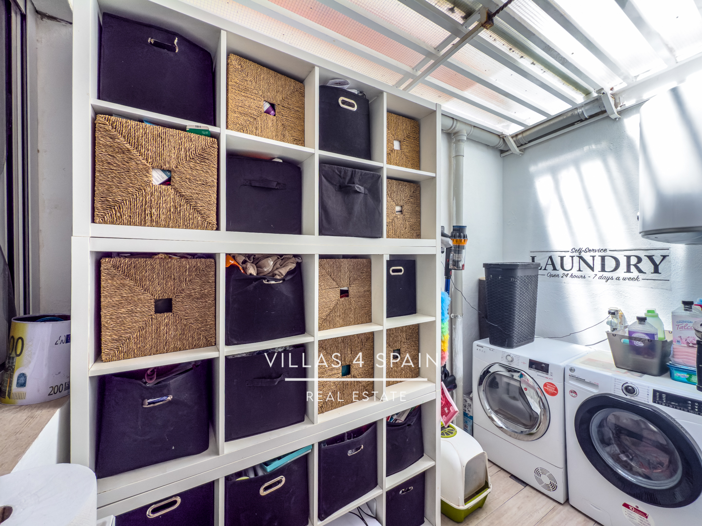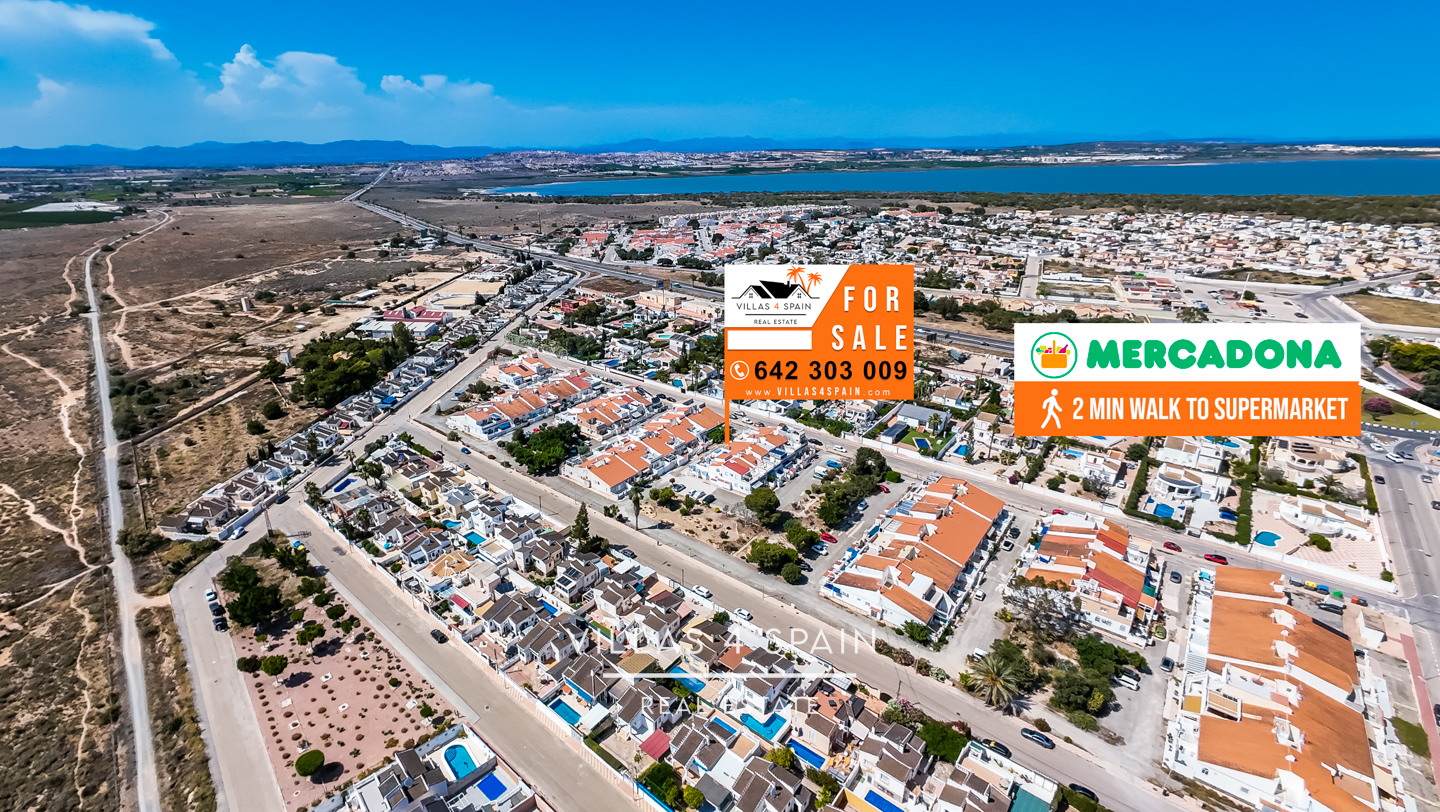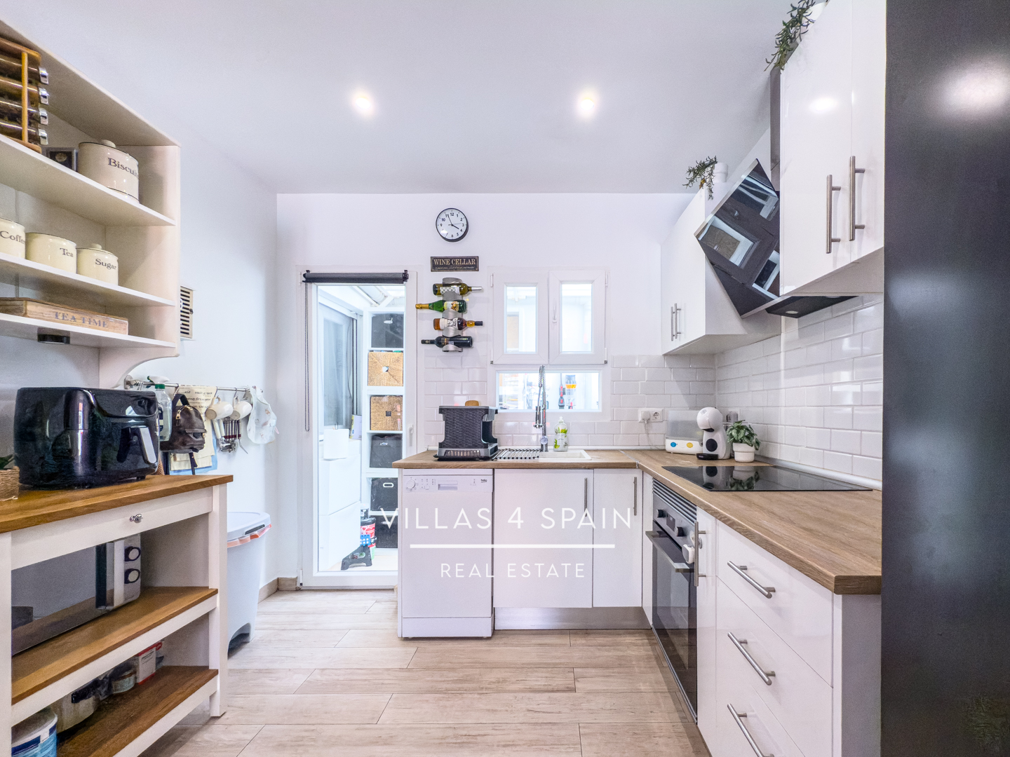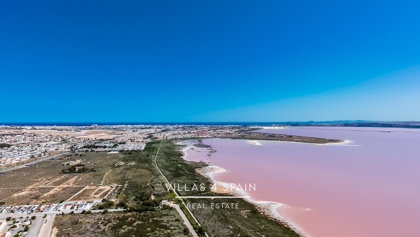 The hallway leads to a master bedroom with fitted wardrobes, a sleek, fully renovated bathroom with a sliding door, and a spacious double second bedroom. Located just a 2-minute walk from a local supermarket and surrounded by a variety of bars and restaurants, this home is perfectly positioned for convenience. The breathtaking Costa Blanca beaches are only a 10-minute drive away, while the iconic pink salt lake, perfect for evening strolls or sunset views, is just a 3-minute walk.