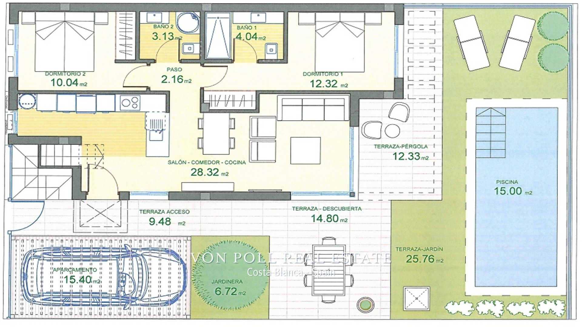 Discover Your Dream Home! Welcome to our modern homes in a secure luxury community with 24-hour security and breathtaking views of the Mediterranean Sea and mountains. Features: 3 bedrooms, 2 bathrooms Fully equipped American style open plan kitchen Living room with dining area Direct access to the optional pool for year-round relaxation Property Highlights: Large private roof terrace with stunning countryside and sea views Private garden for planting lemon and orange trees, and a BBQ area Camera surveillance for added security Great Social Club with a large swimming pool, children’s play area, gym, electric bicycle space with a recharging system, photovoltaic energy, and more Gated community for peace of mind and security Additional Information: Area Located near Polop, a charming Mediterranean town Only 15 km from Albir, Altea, and beautiful sandy beaches Close to a shopping center and international schools Aerport Alicante 65 km and Valencia 150  Possibility to build a 6m x 2.40m pool for €17,800 Method of payment: €3,000 reserve Construction time from reservation: 12 to 15 months   184 houses available 2, 3, and 4 bedroom homes Prices ranging from €280,000 to €478,000 Commission free for buyer! Ready to turn your dream into reality? Don't hesitate to reach out to the Von Poll Costa Blanca Team. We're here to help make your dream home a reality!