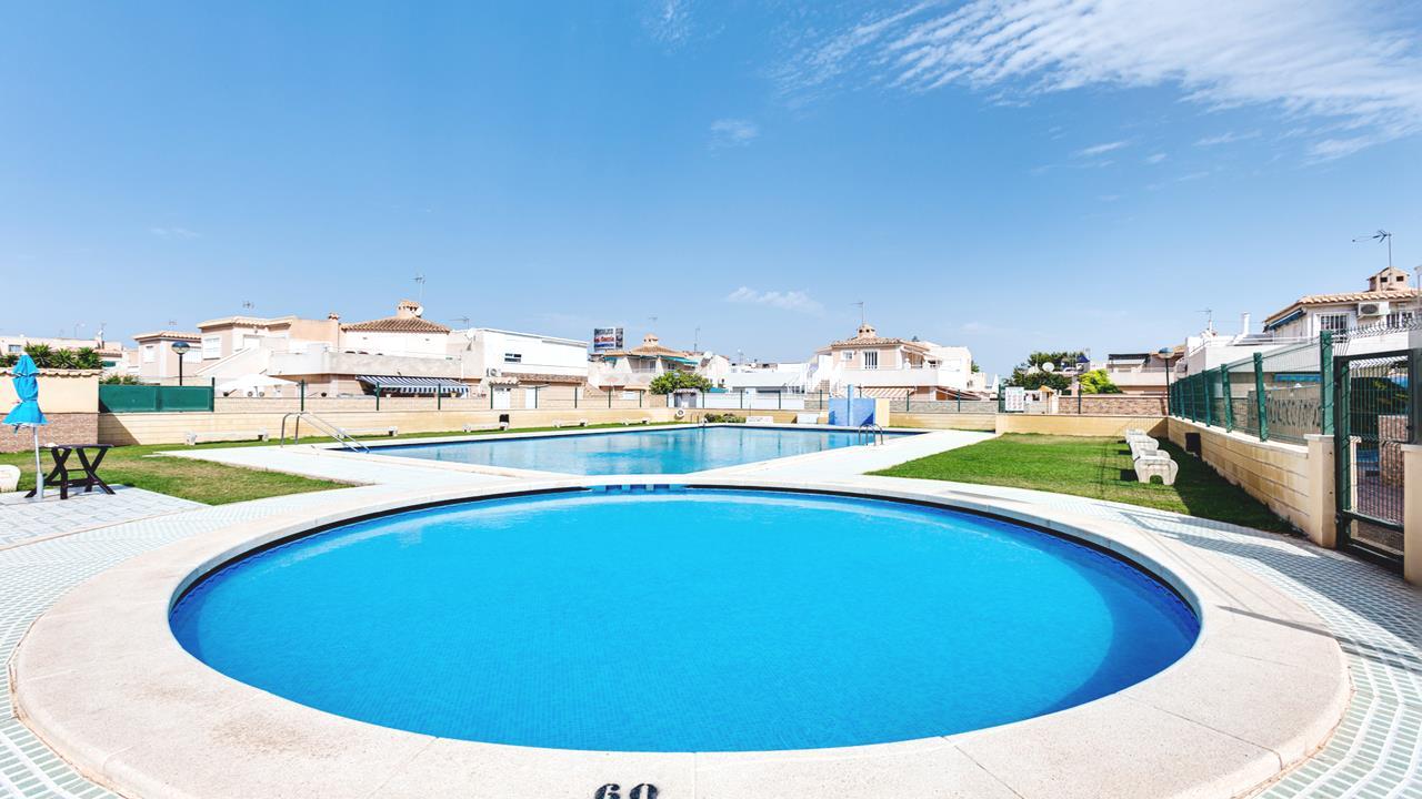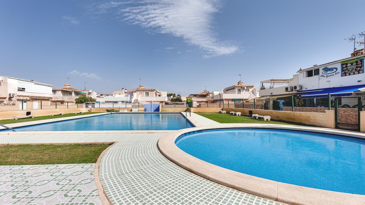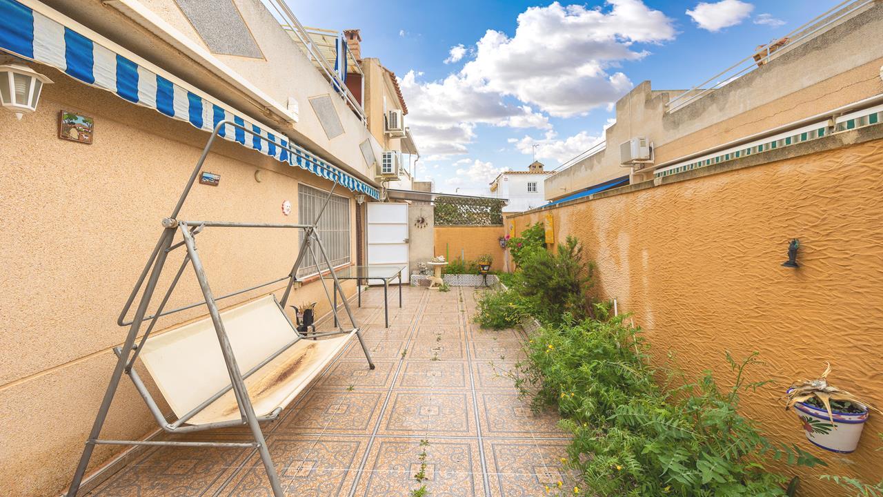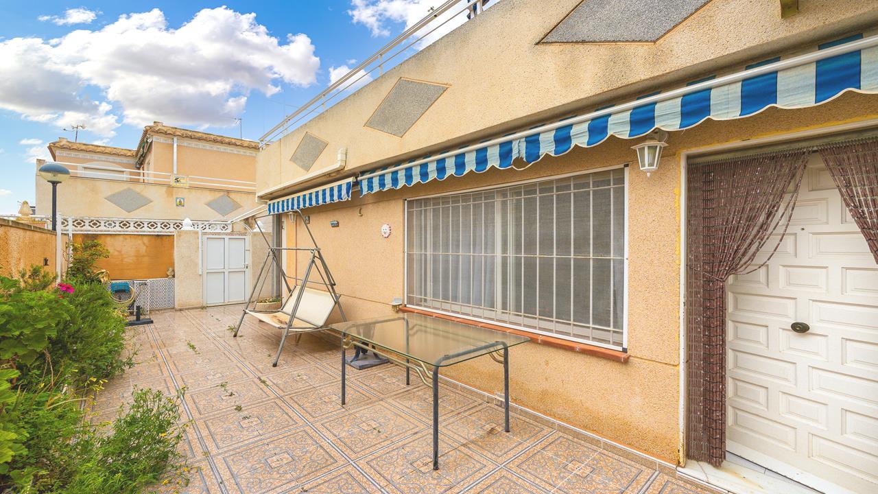 WM17627  --  Torrevieja -  4 Bedrooms Town House with comm. Pool, Terraced Garden & Solarium. - White Villas in Spain presents this Charming Town House in Torrevieja with 4 Bedrooms, Terraced Garden and communal Pool. This cosy and functional townhouse is located in the Doña Inés residential area of ​​Torrevieja, ideal both as a permanent home and for vacation getaways. Despite its compact size, this property is intelligently laid out to take advantage of every corner, offering comfort, privacy, and a Mediterranean lifestyle. With 46m² built on a 47m² plot, this home has 4 bedrooms and 2 bathrooms, making it a perfect option for families, couples in need of extra space, or even as a holiday rental investment. All spaces have been carefully designed and are presented fully furnished, ready to move in from day one. The property has a beautiful private terrace, ideal for enjoying al fresco breakfasts, relaxing moments in the sun, or dinners with friends on warm summer evenings. The interior is equipped with air conditioning and heating, ensuring a comfortable environment year-round, as well as an interior alarm, providing extra security and peace of mind. As part of a well-maintained community, residents can enjoy a magnificent communal pool, perfect for cooling off and socializing during the warmer months. The townhouse also includes a private storage room, providing useful extra storage space. Check it out on our WhiteVillasInSpain site. Located in a well-connected area, with easy access to shops, services, public transportation, and just minutes from the sea, this townhouse offers an excellent quality of life in one of the most popular coastal towns in the province of Alicante. In short, a cozy, functional, and charming property that will allow you to enjoy coastal living with all the comforts.