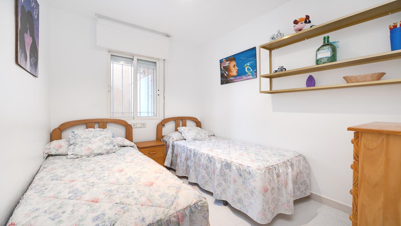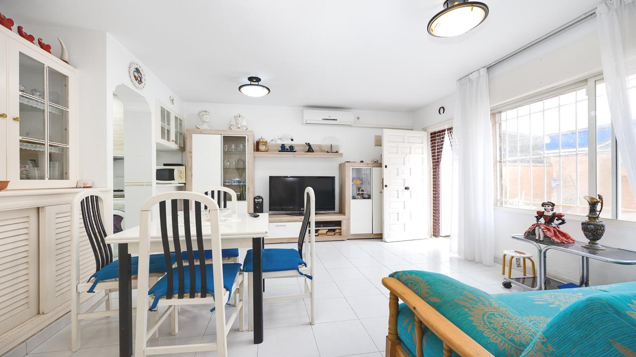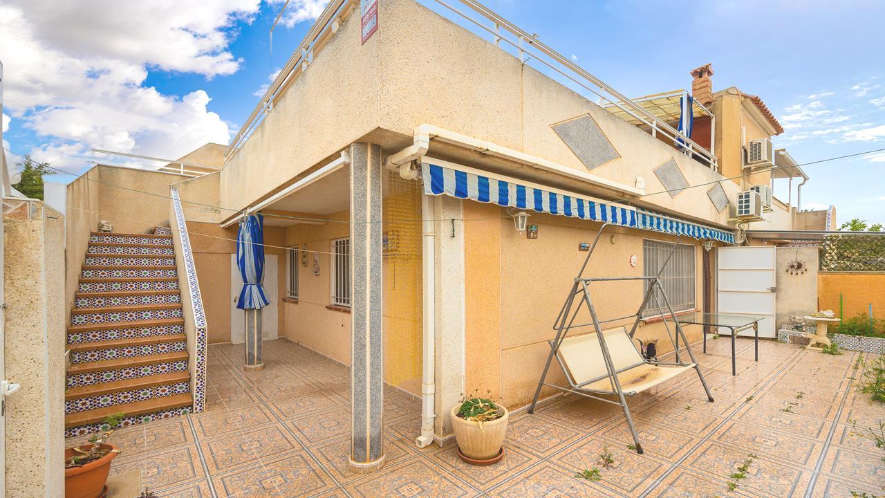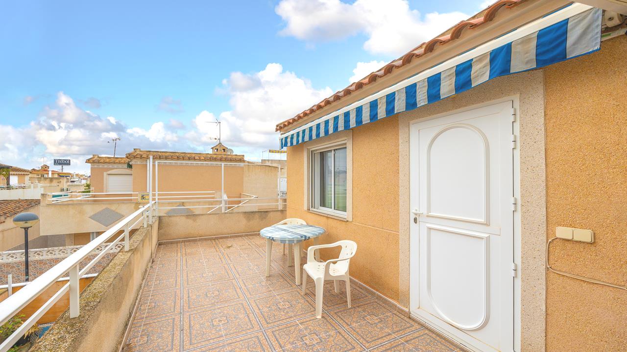 WM17627  --  Torrevieja -  4 Bedrooms Town House with comm. Pool, Terraced Garden & Solarium. - White Villas in Spain presents this Charming Town House in Torrevieja with 4 Bedrooms, Terraced Garden and communal Pool. This cosy and functional townhouse is located in the Doña Inés residential area of ​​Torrevieja, ideal both as a permanent home and for vacation getaways. Despite its compact size, this property is intelligently laid out to take advantage of every corner, offering comfort, privacy, and a Mediterranean lifestyle. With 46m² built on a 47m² plot, this home has 4 bedrooms and 2 bathrooms, making it a perfect option for families, couples in need of extra space, or even as a holiday rental investment. All spaces have been carefully designed and are presented fully furnished, ready to move in from day one. The property has a beautiful private terrace, ideal for enjoying al fresco breakfasts, relaxing moments in the sun, or dinners with friends on warm summer evenings. The interior is equipped with air conditioning and heating, ensuring a comfortable environment year-round, as well as an interior alarm, providing extra security and peace of mind. As part of a well-maintained community, residents can enjoy a magnificent communal pool, perfect for cooling off and socializing during the warmer months. The townhouse also includes a private storage room, providing useful extra storage space. Check it out on our WhiteVillasInSpain site. Located in a well-connected area, with easy access to shops, services, public transportation, and just minutes from the sea, this townhouse offers an excellent quality of life in one of the most popular coastal towns in the province of Alicante. In short, a cozy, functional, and charming property that will allow you to enjoy coastal living with all the comforts.