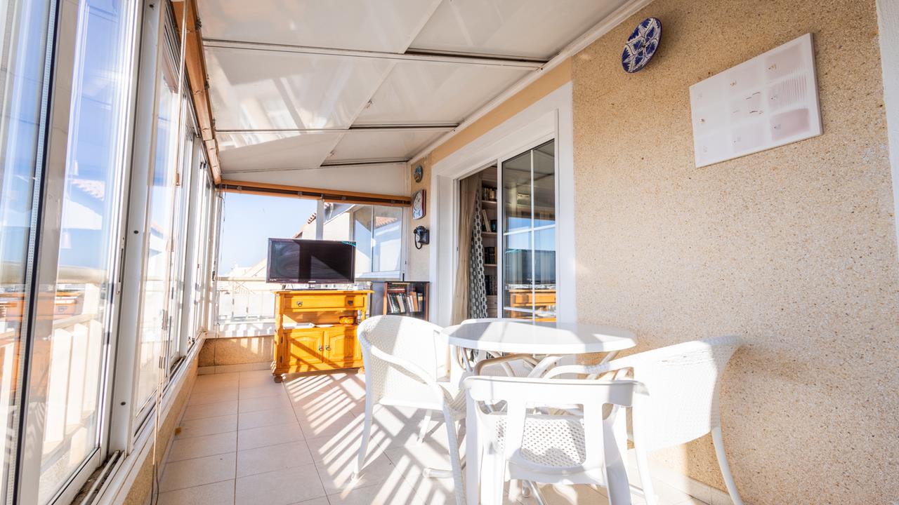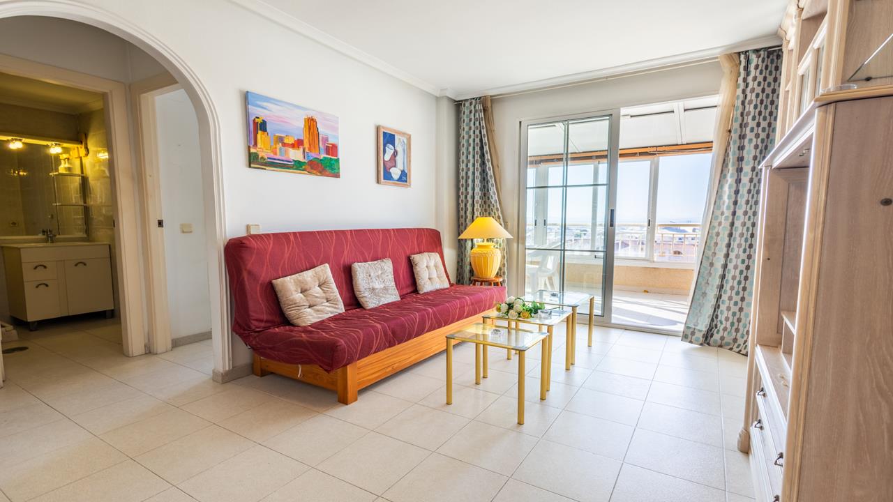 Ref: WS5260  --  Torrevieja - 2 Bedrooms Penthouse (5th Floor) with comm. Pool, Lift Access and Terrace, 350m to the Beach. - White Villas in Spain presents this 2 bedrooms, 1 bathroom Penthouse in one of Torrevieja's most privileged areas, nestled between the beautiful beaches of Acequión and Los Náufragos, just 350m away. With a built area of ​​60m², this home is ready to move into, fully furnished and equipped with appliances. Enjoy its spacious 10m² glazed terrace, perfect for relaxing while watching the sunset thanks to its West orientation and stunning views of the Torrevieja Salt lakes. The property features a bright lounge/diner with air-con installed, an independent kitchen and the privilege of being part of a residential complex with a communal Pool, ideal for cooling off on sunny days. There is Lift access in the building. Check it out on our WhiteVillasInSpain site. This 5th Floor (Top) Penthouse is located in an unbeatable location, surrounded by shops, restaurants, supermarkets, pharmacies, and shopping centres. Furthermore, the connection to Alicante Airport (just a 40-minute drive away) facilitates national and international travel. Living in Torrevieja means enjoying a Mediterranean climate with more than 300 days of sunshine a year and pleasant temperatures year-round. Its golden sand beaches and crystal-clear waters, such as La Mata, Los Locos, and El Cura, are ideal for relaxing or practicing water sports. From the Penthouse terrace, you can enjoy a privileged view of the famous Torrevieja Salt lakes, a spectacular natural setting characterized by its pink-water lagoons and extraordinary biodiversity. This unique ecosystem is home to a wide variety of birds, including flamingos, which add a special charm to the landscape. In addition to its scenic beauty, the Torrevieja Salt lakes have been recognized for their health benefits, thanks to the high concentration of minerals. Just a few minutes away by car or bus, you can visit the Orihuela Costa, famous for its exclusive beaches and top-class golf courses. This Penthouse is the perfect opportunity for those looking for a coastal home with all the amenities and an excellent quality of life. Don't miss this opportunity and contact us for a viewing!