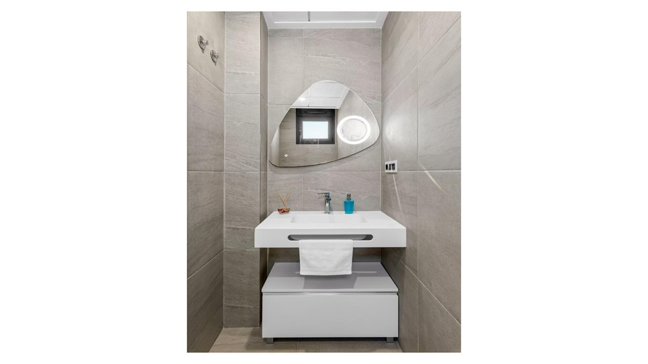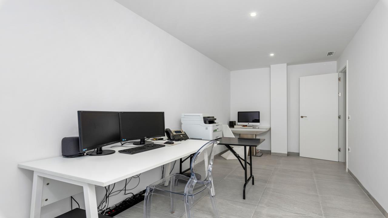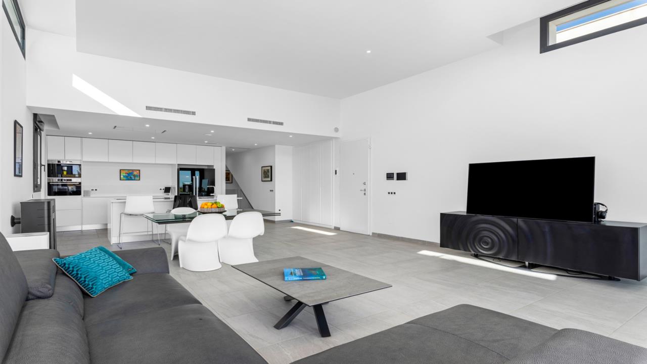 WT2120 -- San Miguel de Salinas - 4 Bedrooms Modern Detached Villa with Pool, Parking & Sea Views. - White Villas In Spain is proud to present this exclusive top of the range Modern Detached Villa with spectacular uninterrupted Sea views. If you are looking for a home that is high tech and walk in ready, then book your viewing for this amazing property today! As we enter the Villa straight into the open plan kitchen/living room, you will immediately notice how bright and spacious it is. The 60m² living area has a raised ceiling of 3.5m and has large panoramic sliding doors across the back, which allows you to fully enjoy the amazing sea views. The doors lead out to a large covered terrace and the beautiful newly fitted heated infinity pool with lights and electric cover. Down a few steps to the back of the Pool there is a cosy deck where you can sunbathe until the sun goes down. Back inside to the sleek modern kitchen, you will be wowed by the technology this villa has. All the appliances are top of the line and can be controlled by your phone, through WiFi Home Connect. That includes the built-in oven, microwave, dishwasher, induction hob, extractor fan and even the coffee machine! All appliances that are built-in, will remain. There is even a hidden pop-up plug stand built into the island. Beside the front door are hidden storage cupboards, ideal for coats, shoes and much more. As we continue to explore this level you will find a separate large fully tiled cloakroom and the bright master bedroom with a large dressing area and a sleek master en-suite with double sinks and glazed walk-in shower. Large sliding doors in the master bedroom lead out to the rear garden with a grassed seating area. As you walk down the stairs, you immediately arrive at the second living room, currently being used as a home gym and play area for children. Patio doors lead out to a lovely courtyard area which is also accessed via all the bedrooms. On this level there are 3 more fabulous bedrooms to explore. The first is currently being used as a spacious office. The next bedroom has built-in wardrobes, patio doors to the courtyard and a high end modern en-suite. The last bedroom is a beautiful suite, comparable to a 5 star hotel room, with endless fitted wardrobes, a gorgeous en-suite with freestanding bath and walk-in shower, as well as patio doors off the bedroom leading to the afore mentioned courtyard. But that’s not all there is down here ... Leading off the living room is a very spacious laundry and utility room which also gives access to an enormous storage room. Throughout the house there is hot and cold air conditioning which can be controlled in 5 different Daikin air zones by the control panels or by your phone. This stunning villa has even more to offer: Top of the line water softener has been fitted throughout, including the swimming pool. The main level living room has a pellet warmer to help create those extra cosy nights. There are mosquito nets and electric shutters throughout the entire property. Every bathroom has radiators, underfloor heating and extractor fans. The electric gate leads to the private driveway with parking for 3 cars and a brand new unused electric car charger. The pedestrian gate has a video doorbell with internal opener. Up on the 60m2 solarium you will find 22 solar panels. New privacy fencing has been installed. Exterior lighting and 5 security camera points around the property. This luxury villa really is walk in ready and is waiting to wow you! Have a look at the Video on our WhiteVillasInSpain site. This stunning villa is less than a 5 minutes’ drive from the vibrant town of San Miguel de Salinas where you can find all the amenities that you require. Sought after Spanish schools, 24hr medical centre, church square, banks, pharmacies, municipal pool, football ground and a fantastic selection of local and international bars and restaurants. As a Spanish town, it celebrates the many colorful fiestas throughout the year and there is a weekly produce market on a Wednesday. If Golf is on your agenda, then you will not be disappointed with the award winning Las Colinas golf course only a few minutes’ drive, and a further 4 prestigious golf courses less than a 10-minute drive. The fabulous sandy coast line of the Orihuela Costa is 12 minutes away by car as is a very popular and large shopping mall, La Zenia Boulevard, where you can shop to your hearts content. Community Fees: 39€ / Month. Bin collection: 75€ / Year. Council Tax: 770€ / Year.