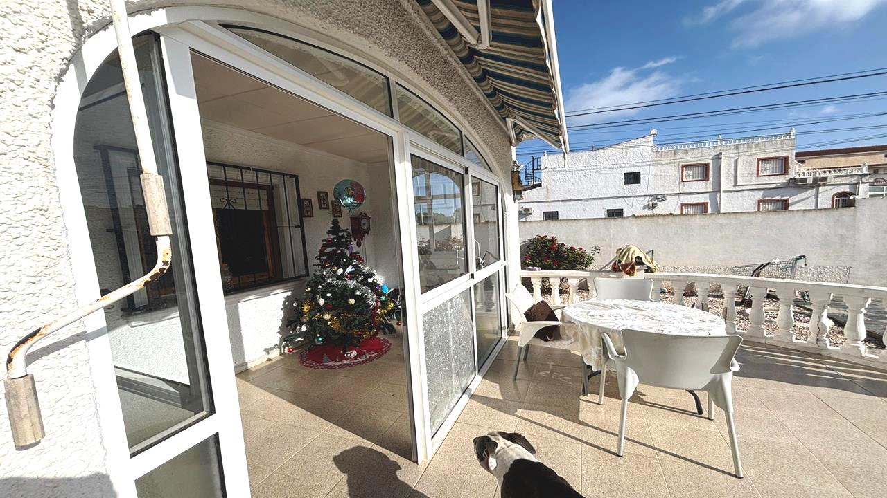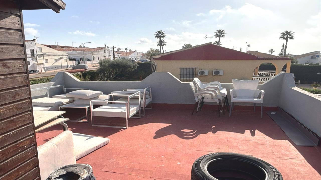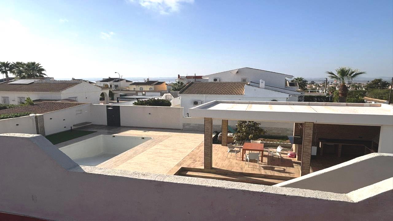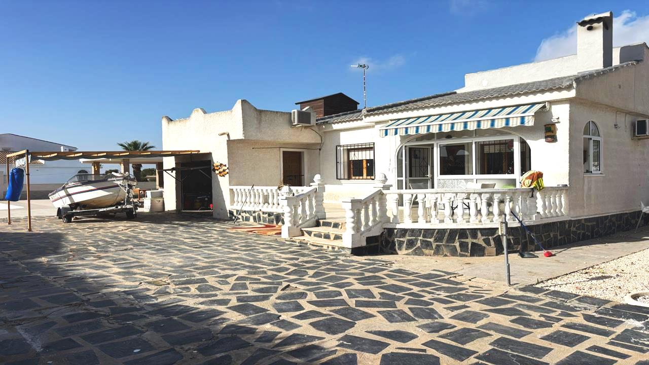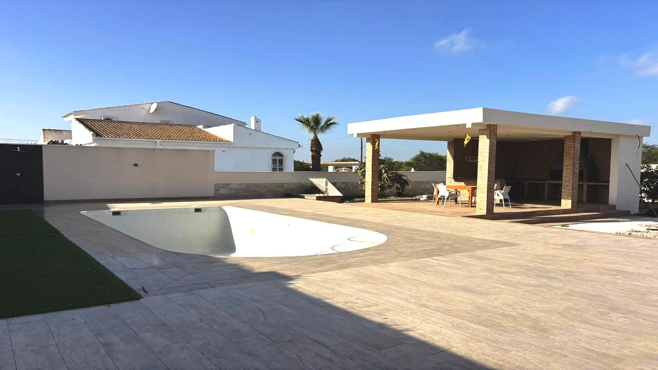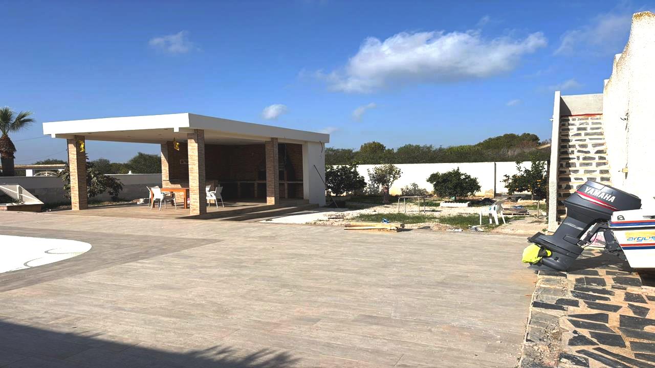 WTi2113 — Torrevieja (El Chaparral) – 2 Bedrooms Detached Villa with Pool, Kitchen/BBQ, Garage and Solarium. - White Villas in Spain presents this wonderful Detached Villa on a spacious 1,000m² plot where every corner invites you to imagine unique moments. From the moment you step inside, you'll be greeted by a large garden and a brand-new pool, ideal for cooling off and enjoying sunny days. Next to the pool, you'll find a spectacular, brand-new gazebo with a built-in barbecue, perfect for gathering family and friends for long evenings outdoors. The property, of approx. 75m², combines comfort and warmth. Upon entering, you're welcomed by a bright living room with a kitchenette, two bedrooms, and a functional bathroom. Outside, a staircase leads you to the private solarium, with stunning views of the unique Pink Lagoon, a natural setting that will make every sunset unforgettable. In addition, the plot offers great potential to design new rooms or garden areas according to your tastes and needs. Check it out on our WhiteVillasInSpain site. Looking for something more? This villa gives you the possibility of building a second floor, further expanding the space and potential of the property. Whether you want to create your ideal home or take advantage of this opportunity as an investment. Council tax: €270 per year and there are no community fees.